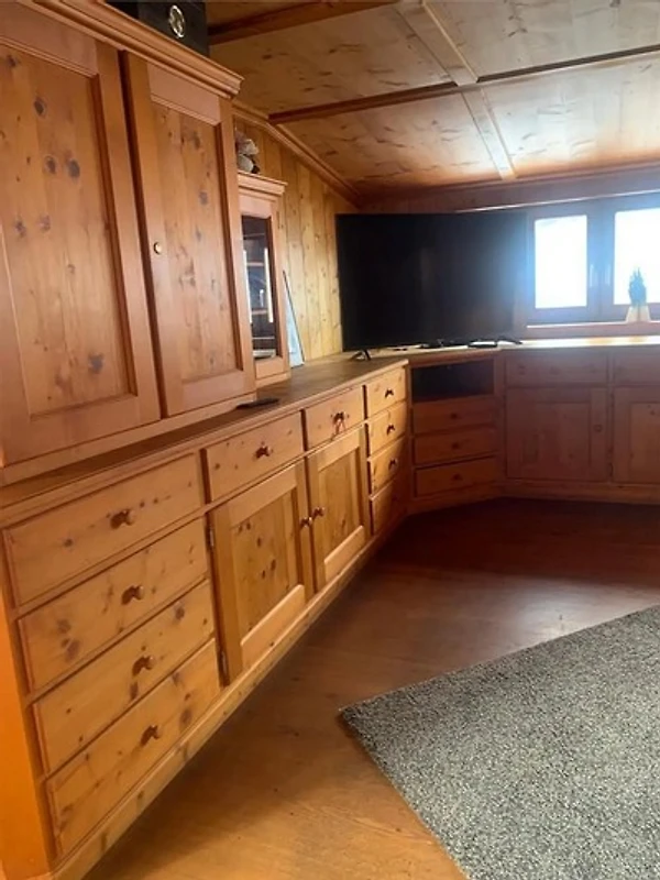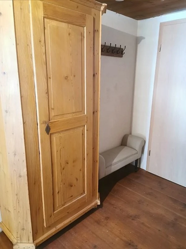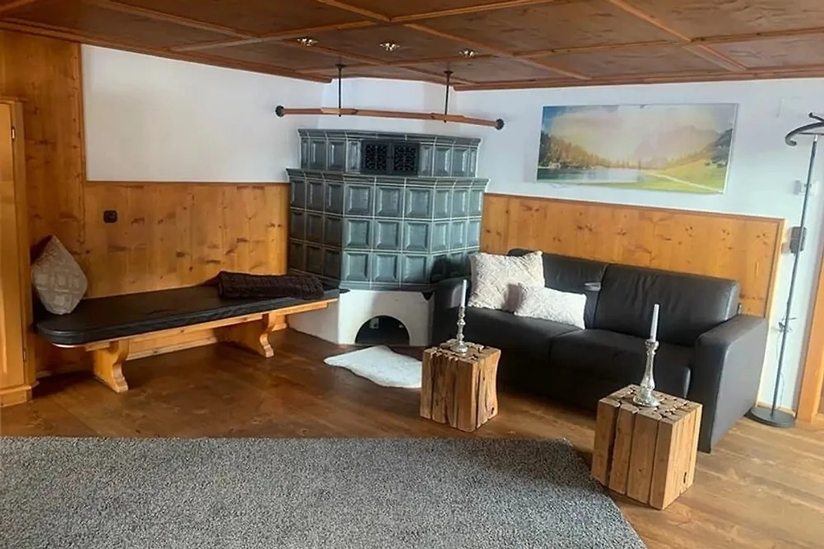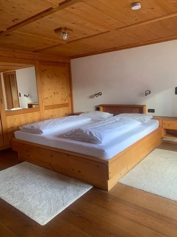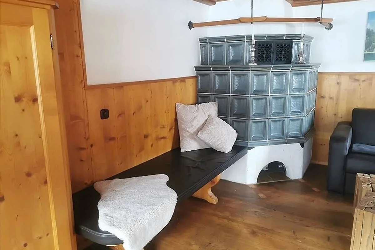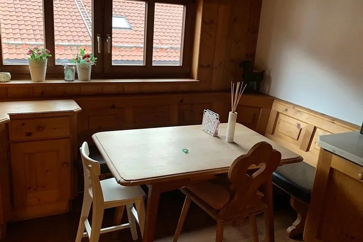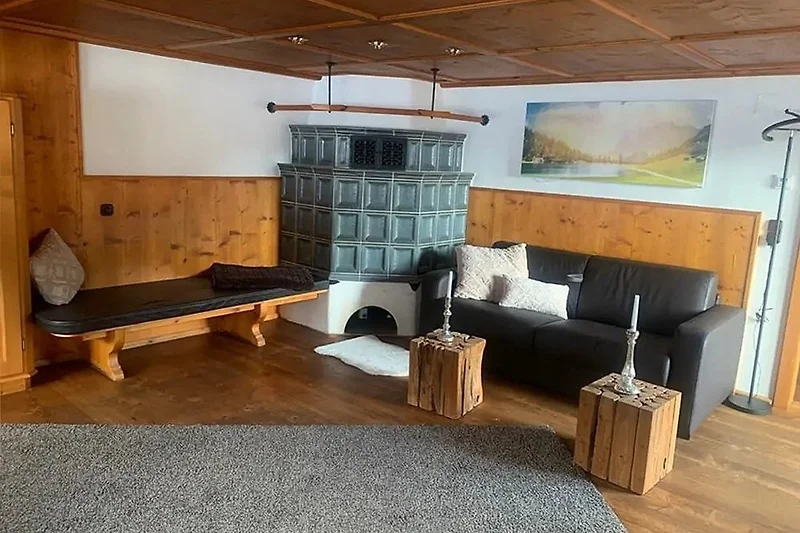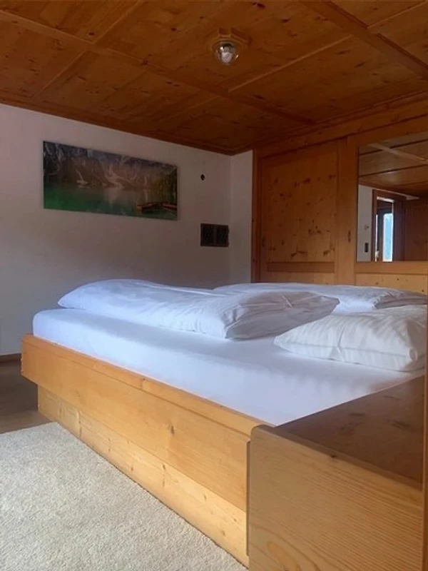 Ein sehr gemütliches Schlafzimmer, fast alles ist aus Holz, von hier aus blickt man direkt auf die Zugspitze. Das Badezimmer ist sehr grosszügig und mit einer Sauna ausgestattet. Das WC ist separat im Badezimmer. Im Wohnzimmer gibt es eine Couch die zu einer vollwertigen Schlafcouch mit Matratze umgestaltet werden kann. Ausserdem eine, zum Relaxen einladende Bank direkt neben dem Kachelofen. In der Küche gibt es eine Eckbank mit Esstisch, von hier aus hat man den Blick auf die Skipiste in Pfronten.