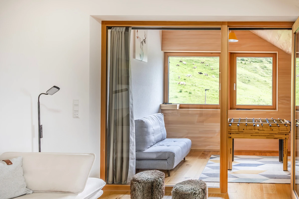 "Dem Himmel so nah"- so fühlt es sich an, wenn man in der Panoramawohnung Berg Aparts 13 zusammen am Tisch sitzt, die atemberaubende Aussicht über das Bregenzerwald Gebirge geniesst und den nächsten Urlaubstag plant.