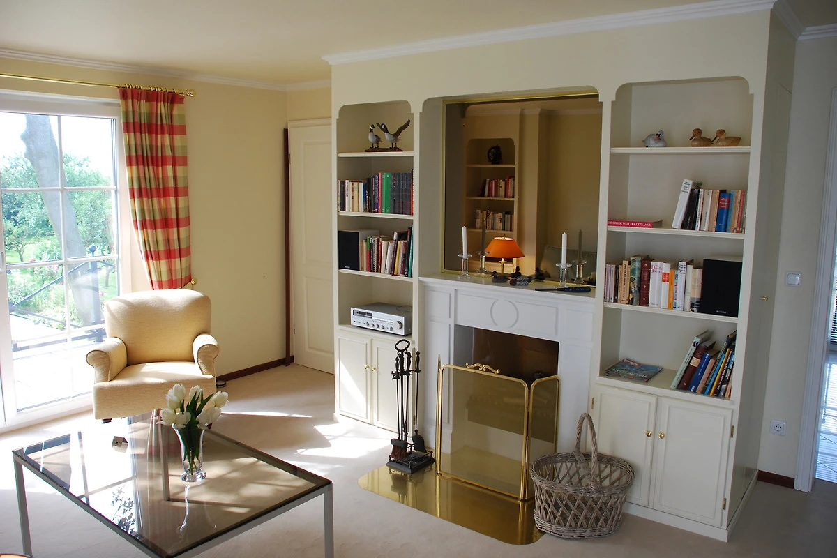 die Sonnenseite pur und einen bezaubernden Blick auf den parkähnlichen Garten und über weite Felder und Wiesen.