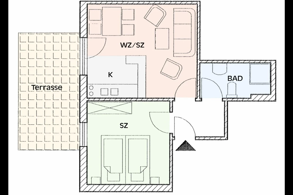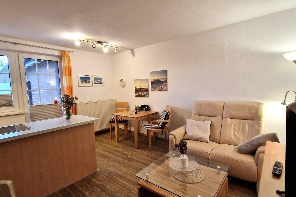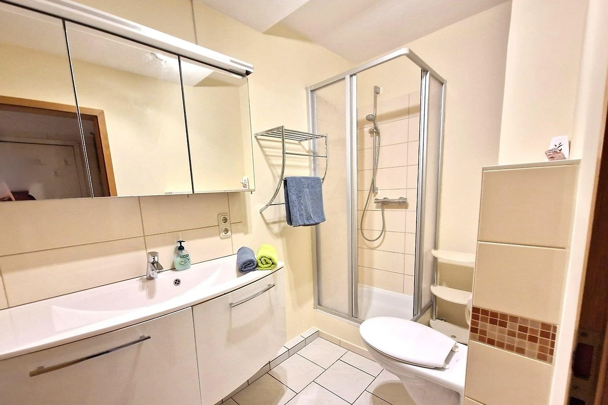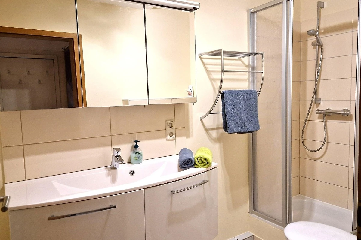Das helle Duschbad bietet alles Notwendige für die tägliche Hygiene. Der gemütliche Wohnbereich ist mit einem Sofa, einem Sessel und einem Esstisch ausgestattet und lädt zum Verweilen ein. Zur Unterhaltung steht ein TV bereit. WLAN sorgt für eine konstante Internetverbindung. Die Wohnung ist allergikergeeignet und bietet zudem einen Parkplatz. Die Heizung sorgt für angenehme Temperaturen zu jeder Jahreszeit. Geschirr, Besteck sowie ein Staubsauger sind ebenfalls vorhanden.