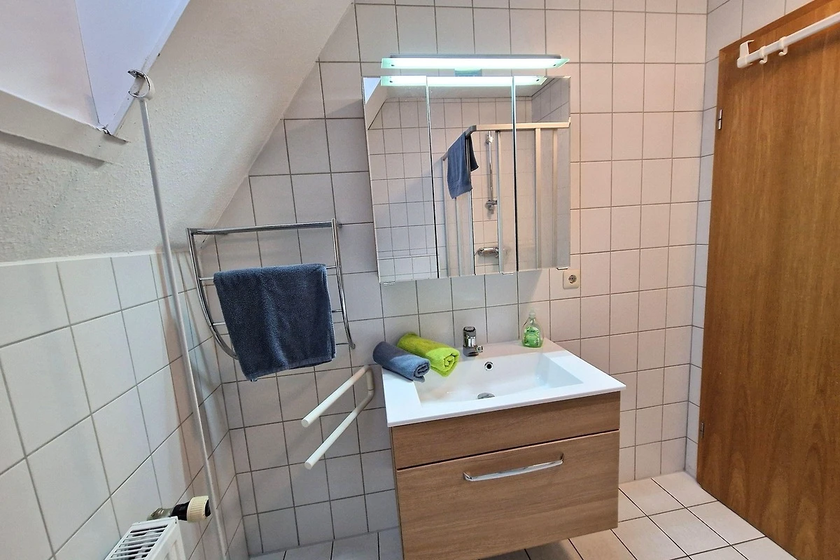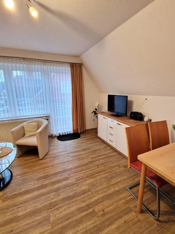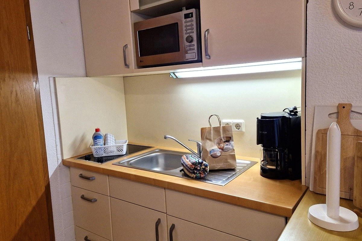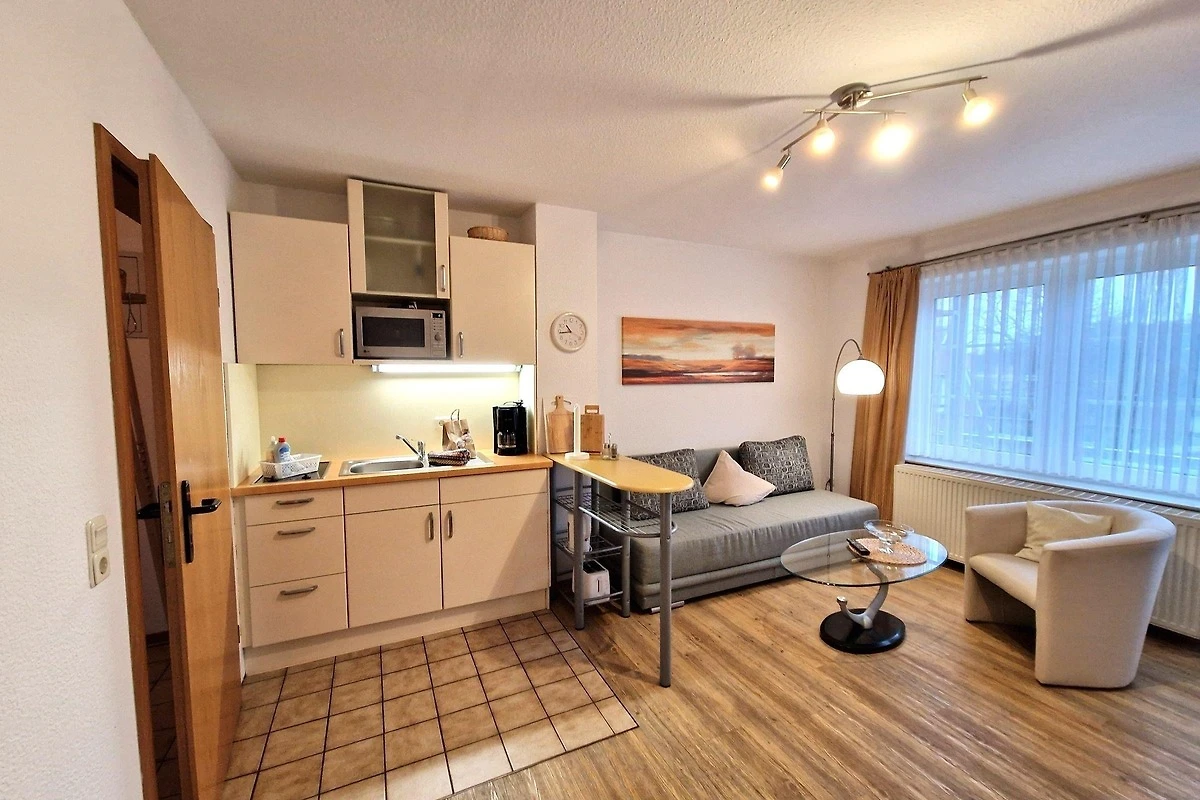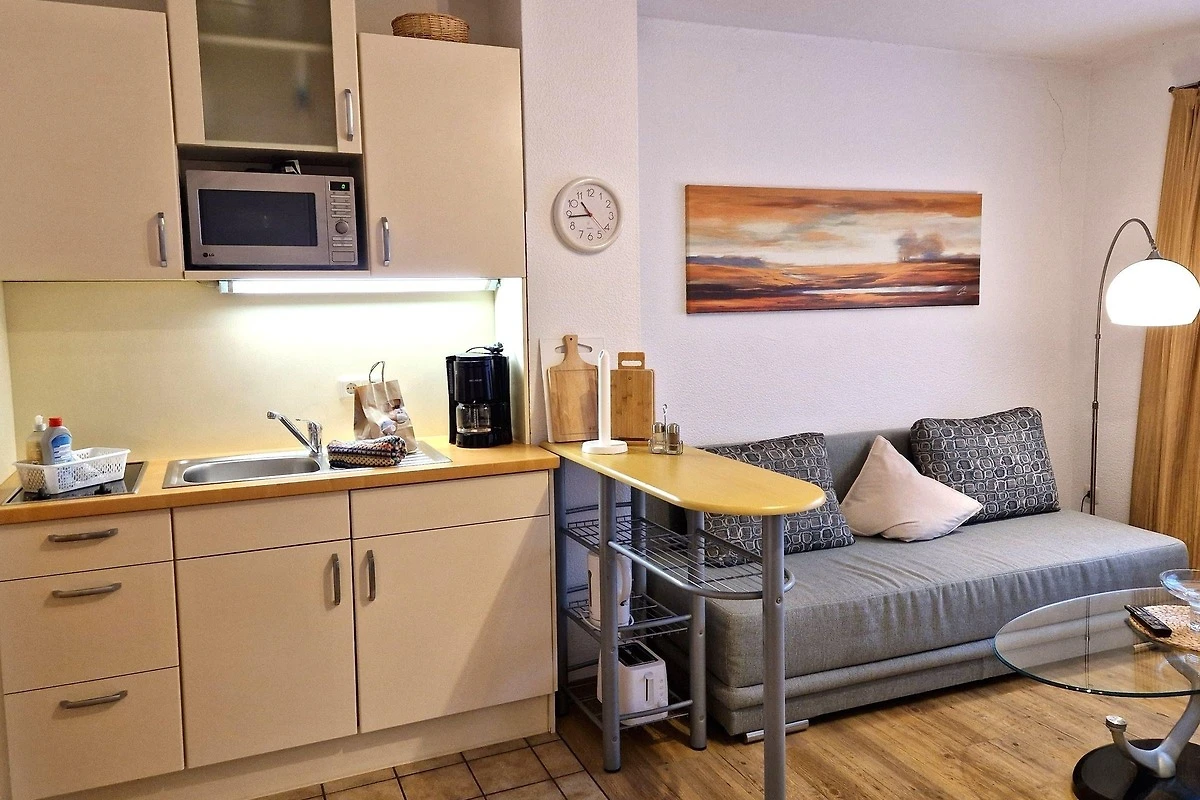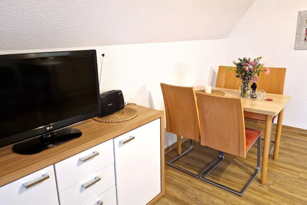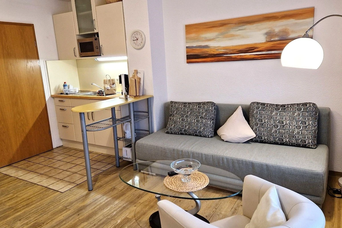 Für Unterhaltung sorgt der Fernseher im Wohnbereich, der mit einem gemütlichen Sofa und Sessel ausgestattet ist. Ein Esstisch lädt zu gemeinsamen Mahlzeiten ein. Die Ferienwohnung ist allergikergeeignet und bietet zudem Internet mit WLAN. Ein Parkplatz steht ebenfalls zur Verfügung, ebenso wie eine Waschmaschine und ein Wasserkocher. Die zentrale Heizung sorgt für angenehme Temperaturen zu jeder Jahreszeit. Staubsauger sind nicht vorhanden.