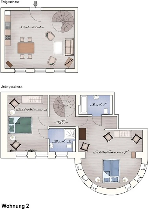 Die Wohnung für bis zu vier Personen und in einer Grösse von 85 m² ist gemütlich eingerichtet und besteht aus drei Zimmern: Ein grosses Wohnzimmer mit offener Küche (Siemens-Geräte) und schönem südlichen Blick auf den Garten, zwei grosszügige Schlafzimmer mit jeweils einem Doppelbett und zwei separaten Badezimmern (eins davon mit Badewanne, eins mit Dusche, beide mit WC).