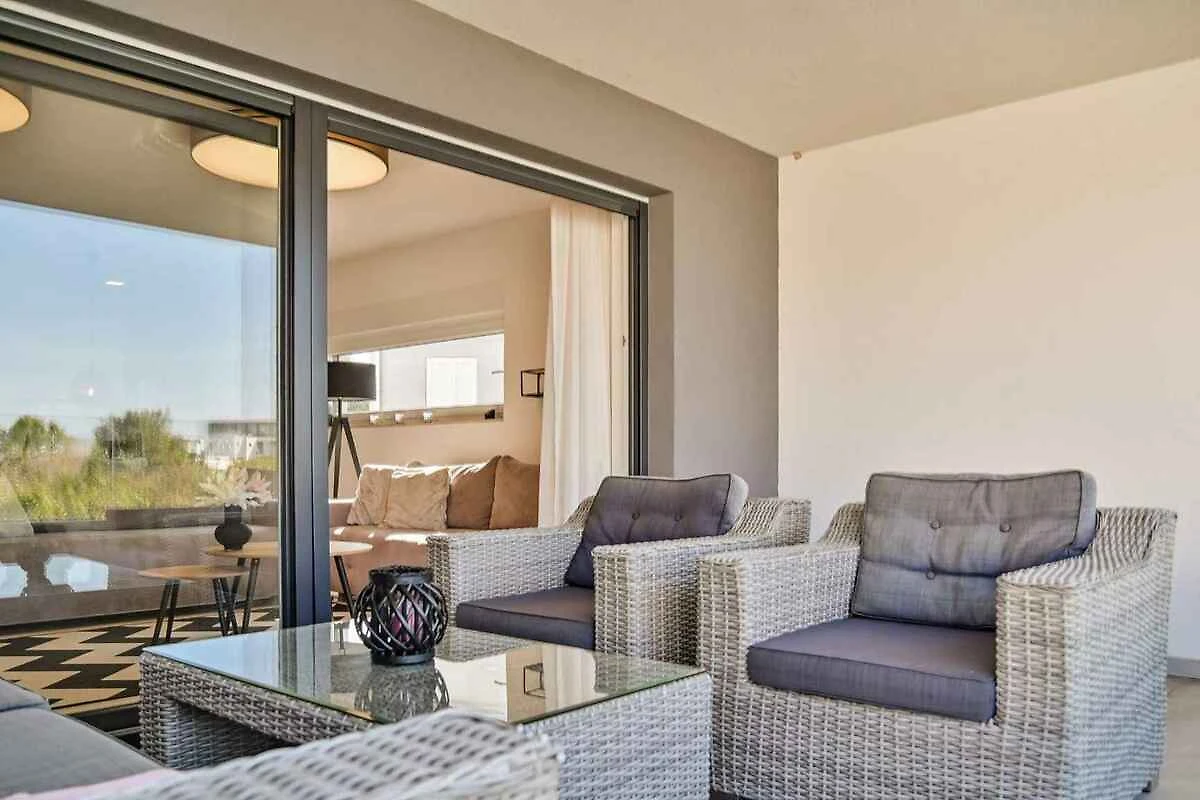 Wohnzimmer mit 1 Zusatzbett auf Couch/Sofa, Sitzecke, Klimaanlage und Zugang zum Balkon. 2 Schlafzimmer jeweils mit 1 Doppelbett und TV. Bad mit Dusche, WC und Fenster. Küche mit Essecke (5 Plätze), Elektroherd (4 Platten), Kühlschrank (Eisfach), Kaffeemaschine, Toaster und elektrischem Wasserkocher. Separates WC mit WC.