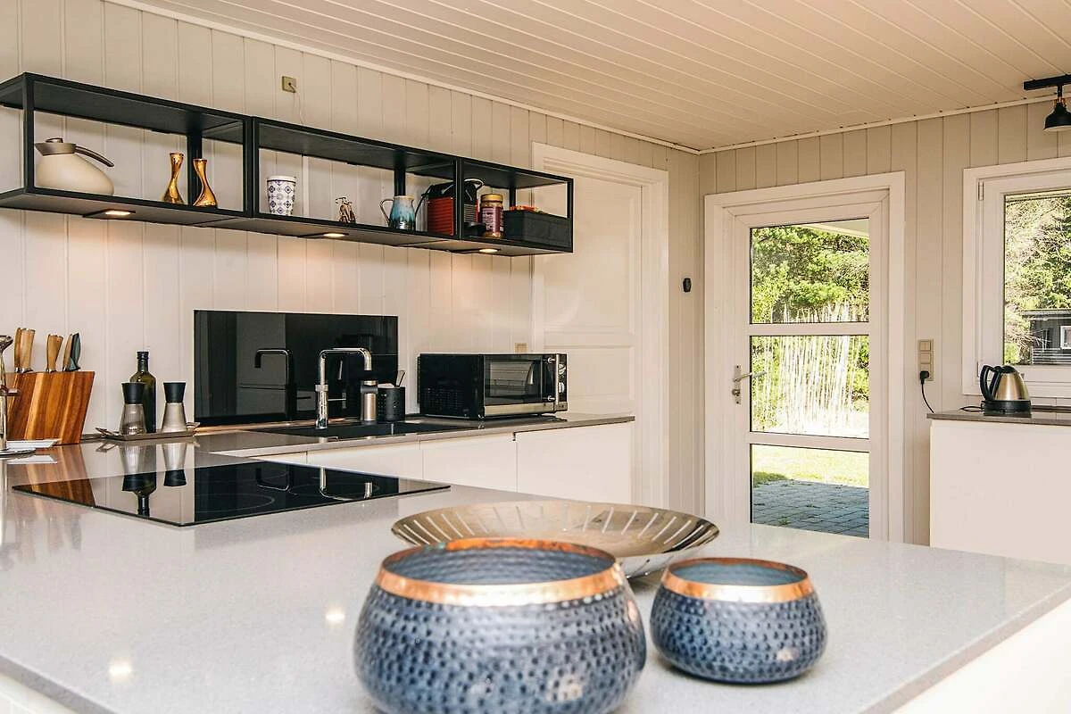 , Küche(Herd(Induktion), Kaffeemaschine, Backofen, Mikrowelle, Spülmaschine, Kühlschrank(+ Gefrierfach), Tiefkühlschrank(1-59L)), Wohn-/Schlafzimmer(TV(Deutsch Fernsehsender, dänische Fernsehsender, norwegische Fernsehsender, schwedische Fernsehsender), CD-Spieler, Stereoanlage), Wohn-/Schlafzimmer, Schlafzimmer(Doppelbett), Schlafzimmer(Doppelbett), Schlafzimmer(2x Einzelbett), Badezimmer(Trockner, Waschbecken, Dusche, Toilette, Waschmaschine), Heizung(elektrisch), Terrasse, Gartenmöbel, Liegestühle, Luft-Luft-Wärmepumpe