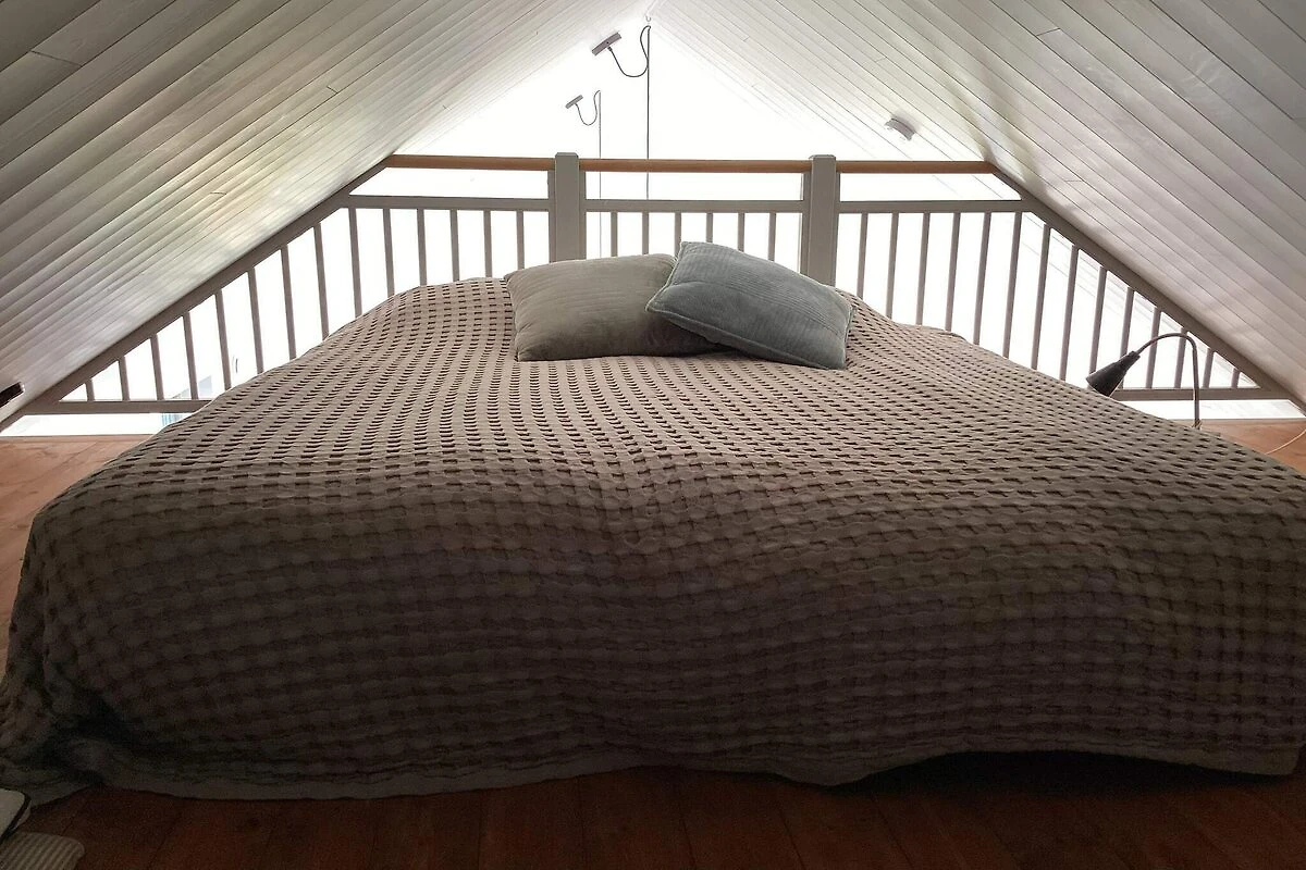 A modern and fresh house in a very good location on the outskirts of beautiful Steninge. The house is situated high up with a lovely view of the open landscape. You have your own patio with outdoor furniture and a barbecue. A short bike or car ride takes you to the Steninge coast, which is alternately dramatic and beautiful. There are several small bathing coves and scenic walking areas. The house is newly built next to the owner's garage building. You have a bright and beautiful living room and open kitchen. There is a dining area and comfortable armchairs. The large windows have a lovely view of the open meadows. The kitchen is well equipped with a dishwasher. The bathroom is fully tiled with a shower. Up a spiral staircase you reach the sleeping loft which has two single beds. You have your own part of the owner's plot with outdoor furniture and a charcoal barbecue. The house is located in a fantastically scenic location in Steninge church village, close to the beach in Steninge. You cannot miss visiting Gösta's restaurant and café or Kuststationens café. A little further north you will find the small bathing bay Glassvik. Here you will find fantastically beautiful and unique nature and rich bird life. The small beach is particularly suitable for families with children and those who want some peace and quiet. Just south is the community of Haverdal. Visit Särdals kvarn, which has both a café and a shop. It is only a short drive to Halmstad. Here you will find a wide range of entertainment with many restaurants, cafés and a wide range of shops, art and nature. Experience Tylösand's vibrant swimming and entertainment scene. Hike on Prince Bertil's path from Halmstad Castle to Ricardo's ice cream café in Möllegård. For those interested in golf, there are a number of golf courses in the surrounding area. It is also a short drive to the summer town of Falkenberg. Here you will find many nice small cafés, restaurants and shops.