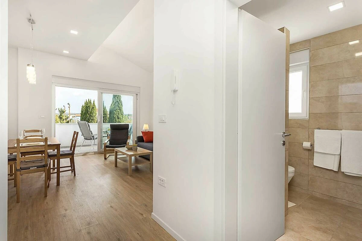 Der geräumige Wohnbereich und die saubere Küche machten unseren Aufenthalt angenehm, Nahe der Arena von Pula und den lokalen Stränden