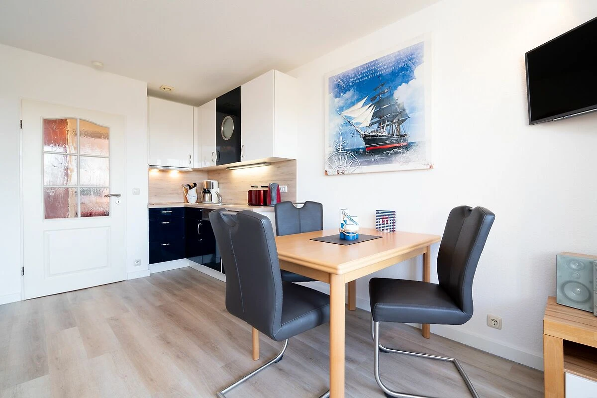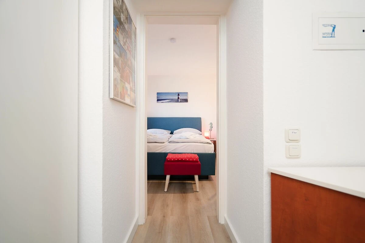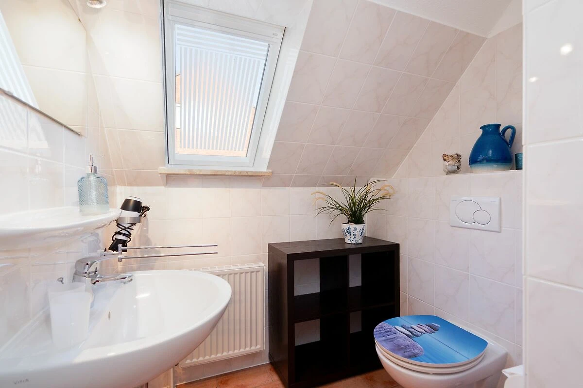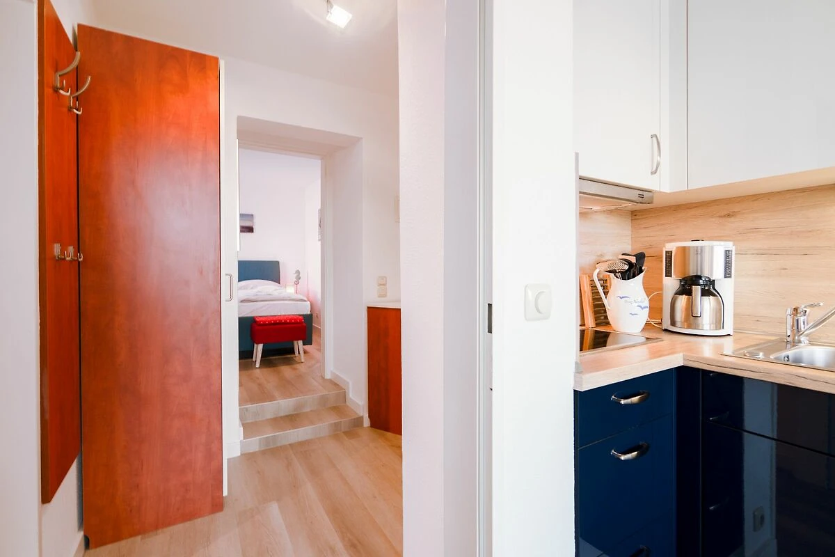 Herzlich willkommen im charmanten Appartement “Aus Liebe” in Haffkrug – einem idealen Rückzugsort für erholsame Tage an der Ostsee. Auf ca. 44 qm bietet Euch dieses gemütlich eingerichtete Urlaubsdomizil Platz für bis zu 4 Personen und überzeugt mit einer liebevollen Ausstattung, maritimem Flair und einer sonnigen Lage. Nur etwa 250 Meter vom feinsandigen Strand entfernt könnt Ihr hier Euren Urlaub entspannt genießen. Der überdachte Balkon mit Gartenblick lädt zum Frühstück in der Morgensonne oder einem Glas Wein am Abend ein. Ein eigener Parkplatz, kostenloses WLAN (bei Störungen kein Anspruch auf Erstattung oder Ersatz) sowie eine kleine Küche gehören selbstverständlich zur Ausstattung dazu. Einkaufsmöglichkeiten, Restaurants und der Bahnhof befinden sich in fußläufiger Nähe – ideal für alle, die auch mal ohne Auto unterwegs sein möchten. Im Keller stehen Euch zudem eine gemeinschaftlich genutzte Waschmaschine und ein Trockner zur Verfügung, bequem nutzbar über einen Münzautomaten.