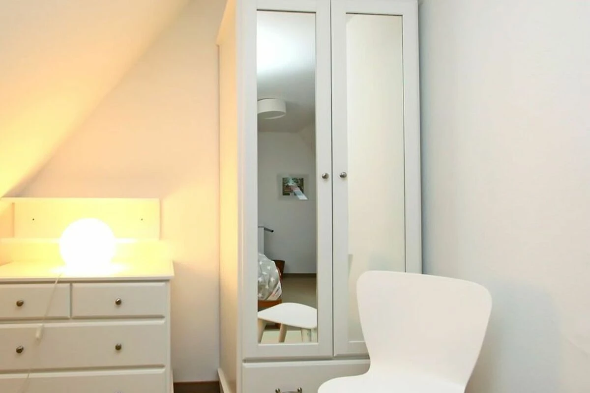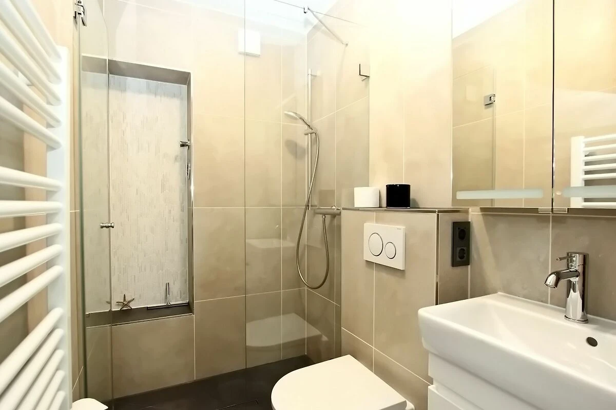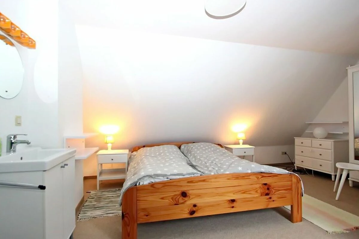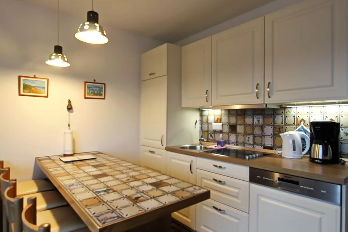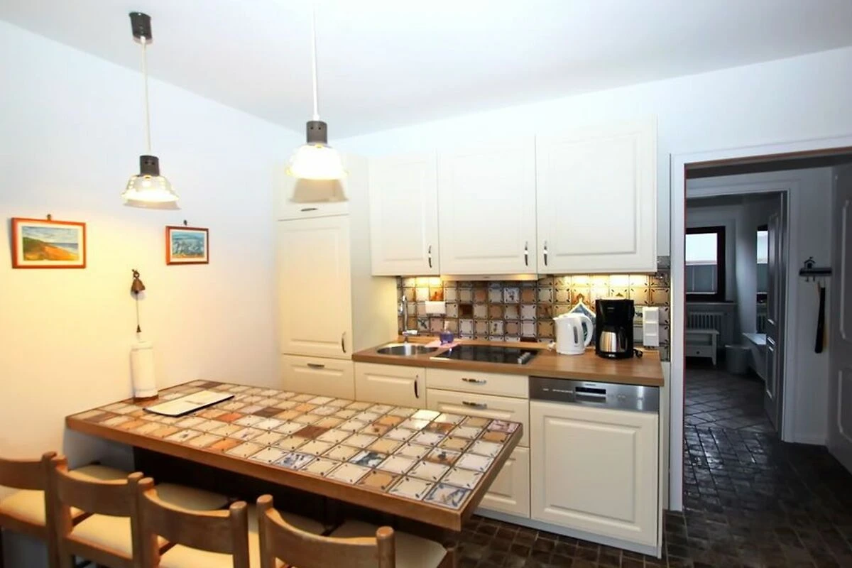 ganz ruhig gelegenes, gepflegtes 3 Zimmer Appartement, für bis zu 4 Personen, über OG/DG, mit ca. 60m². Im OG befindet sich ein Wohnraum mit einer neuen, offenen Einbauküche mit Ceranherd, Geschirrspüler, Kühlschrank mit kleinem Gefrierfach; Esstisch für 4 Personen, Schrank, Sat-Flat-TV, gemütliche Sitzecke mit zwei 2 Sitzer-Couches und Beistellhocker, Tisch, Zugang zum sonnigen Südbalkon mit Balkonmöbel, von dort aus hat man einen fantastischen Blick auf den Leuchtturm und die Fussgängerzone; Duschbad/WC; Flur mit Garderobe; Schlafraum mit Doppelbett (zwei einzelne Matratzen), Nachttische, ein grosser Kleiderschrank bietet ausreichend Fläche; über eine Holzwendeltreppe geht es ins DG: dort befindet sich ein weiterer Schlafraum mit Doppelbett, Nachttische, Waschbecken und ein Kleiderschrank.