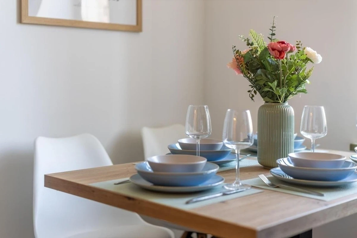 Unsere stilvolle 89 m² grosse Ferienwohnung bietet Platz für bis zu 6 Personen und ist ideal für Familien, Freunde oder Geschäftsreisende. Zwei gemütliche Schlafzimmer mit einem grossen Doppelbett und zwei Einzelbetten sowie eine grosse Schlafcouch für 2 Personen im Wohnbereich sorgen für erholsame Nächte. Die voll ausgestattete Küche verfügt über eine Spülmaschine, Backofen, Toaster und eine Nespresso-Maschine mit Milchaufschäumer. Das moderne Badezimmer ist mit Fussbodenheizung, bodengleicher Dusche, Haartrockner und Handtüchern ausgestattet. Ein Smart-TV, kostenloses WLAN und ein Schreibtisch bieten beste Bedingungen für Arbeit und Entspannung. Auf dem Balkon mit Gartenblick kannst du den Tag ausklingen lassen. Ein eigener Parkplatz sowie Babybett und Hochstuhl auf Anfrage runden das Angebot ab.