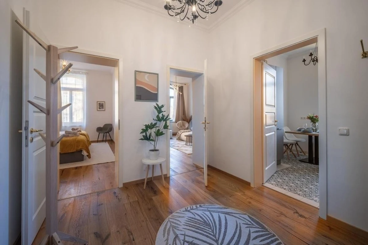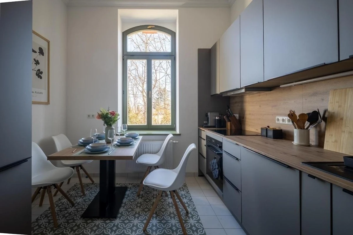 Das Goethe Palais liegt in einer ruhigen Gegend direkt am Grossen Garten, Dresdens grösster Parkanlage. Einkaufsmöglichkeiten wie ein Bio-Supermarkt und ein Bäcker sind nur wenige Gehminuten entfernt. Mit den nahegelegenen öffentlichen Verkehrsmitteln erreichst du die Altstadt in ca. 8 Minuten mit dem Auto und kannst Sehenswürdigkeiten wie die Frauenkirche, den Zwinger und die Semperoper erkunden. Das Panometer Dresden liegt nur 2,8 km entfernt, der Hauptbahnhof 3,9 km. Die Brühlsche Terrasse und der berühmte Fürstenzug sind ca. 5 km entfernt. Der Flughafen Dresden ist mit einer Entfernung von ca. 12 km ebenfalls gut erreichbar. Dank der ruhigen Lage, dem schnellen Zugang zu öffentlichen Verkehrsmitteln und dem kostenlosen Parkplatz ist die Ferienwohnung perfekt für Städtetrips und Geschäftsreisen.