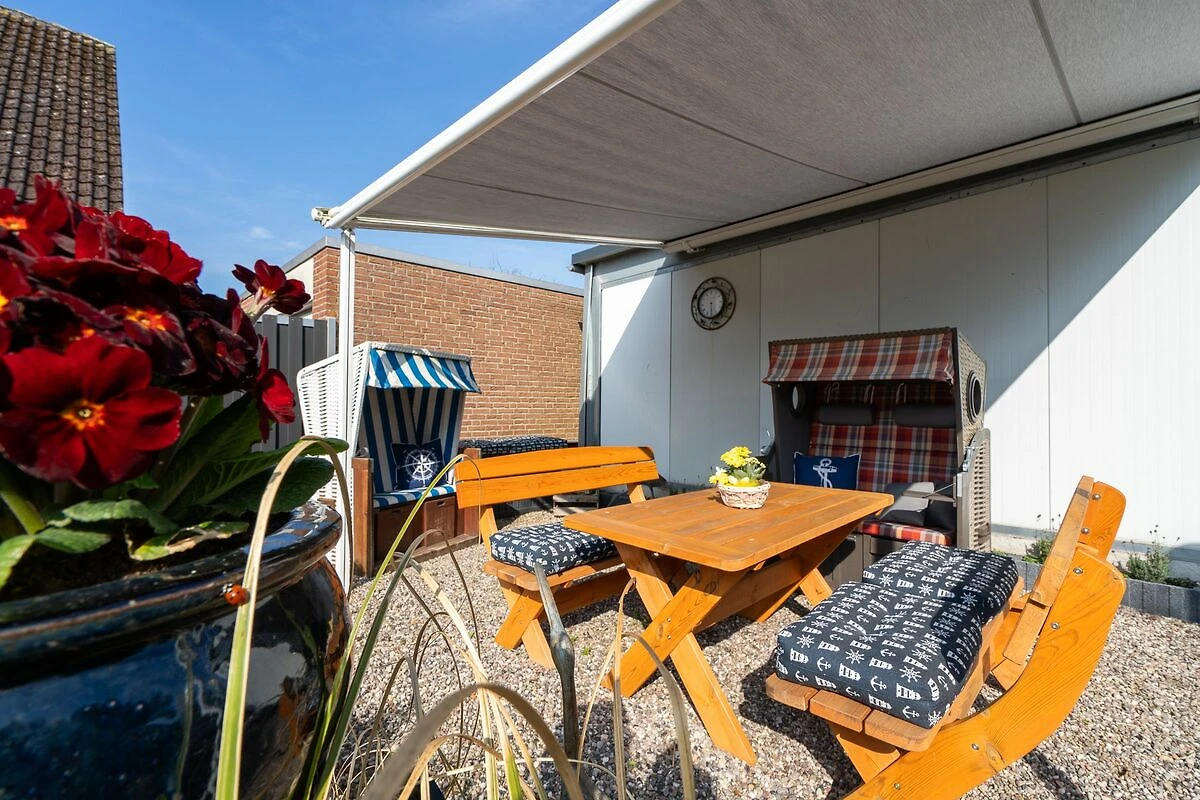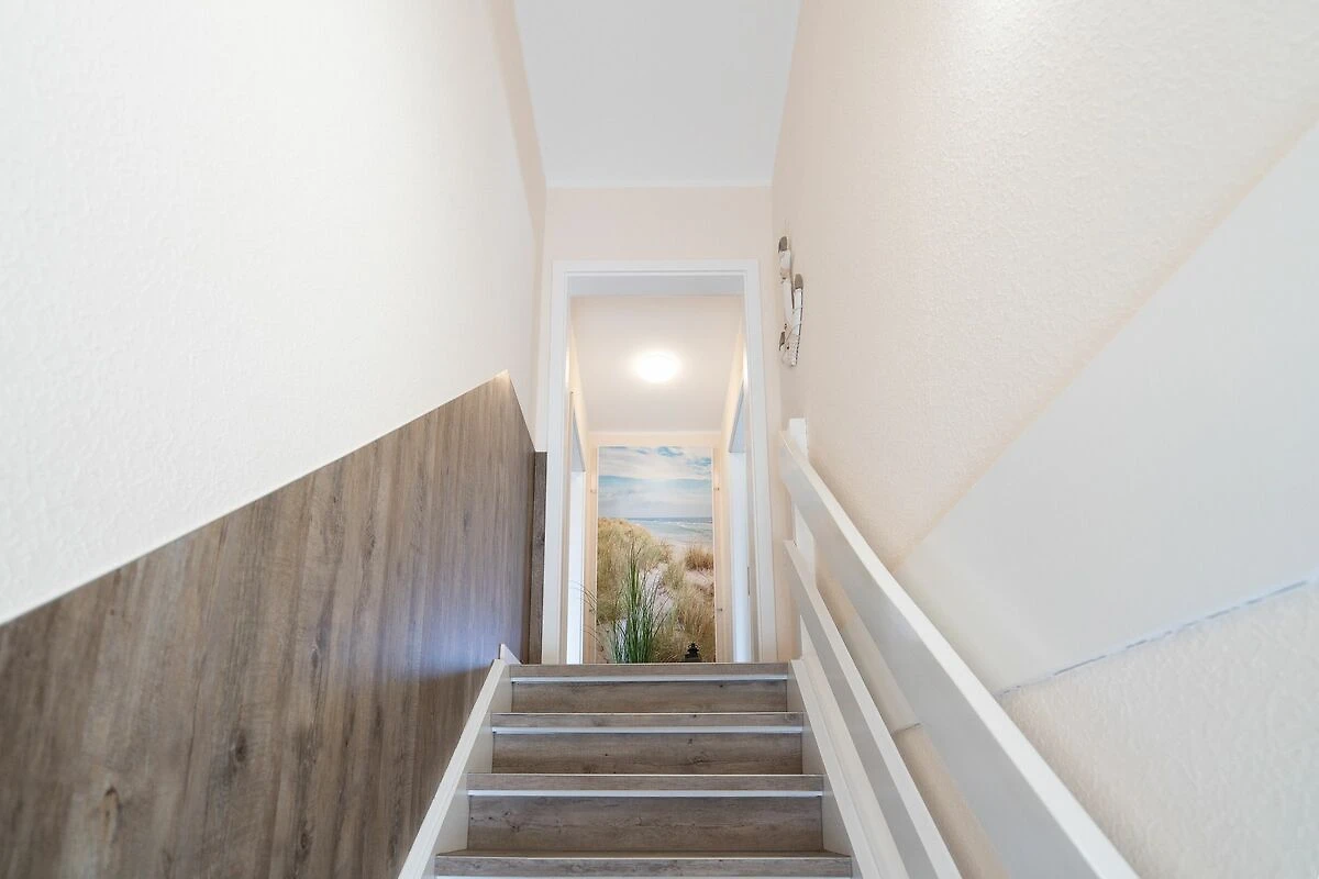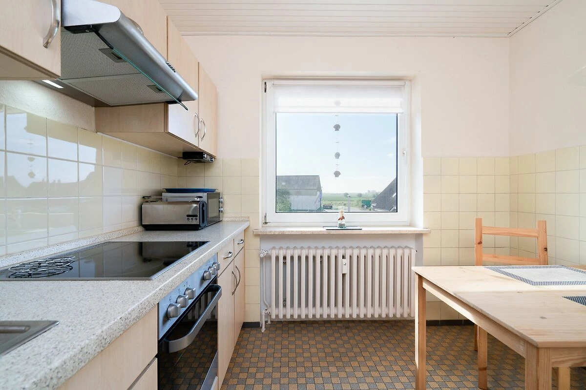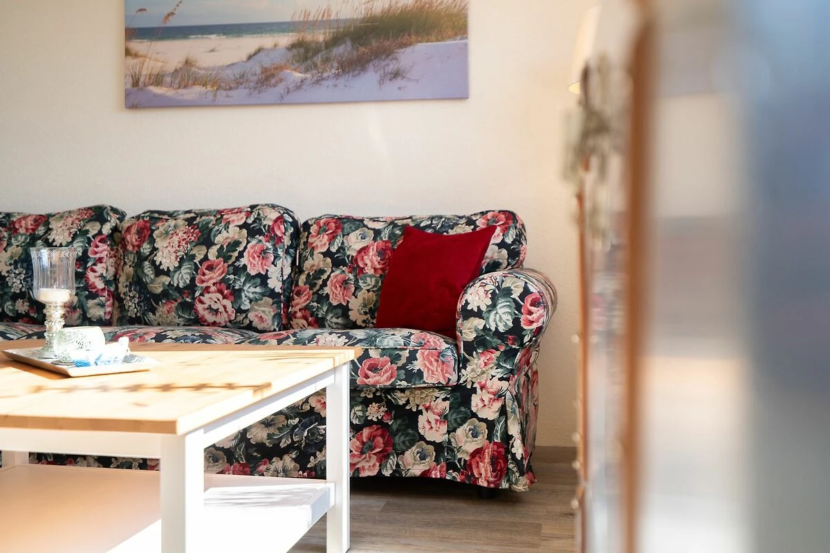 Diese charmante 60 m² große Ferienwohnung im 1. Obergeschoss bietet Platz für zwei Gäste und heißt auch Hunde herzlich willkommen. Die separate Küche ist voll ausgestattet und verfügt unter anderem über eine Mikrowelle, Kaffeemaschine und Toaster. Ein komfortables Schlafzimmer und ein modernes Duschbad mit Haartrockner sorgen für einen angenehmen Aufenthalt. Der großzügige 900m² eingezäunte Außenbereich lädt mit einer Terrasse mit Grillplatz, Markise, Sitzmöglichkeiten, Strandkorb und Sonnenliegen zum Entspannen ein.
