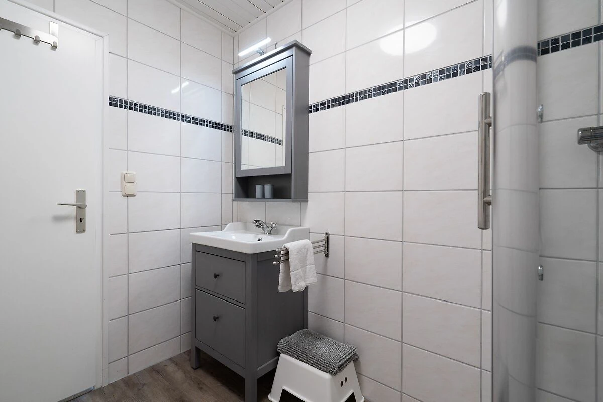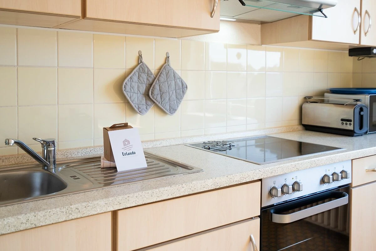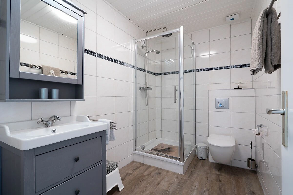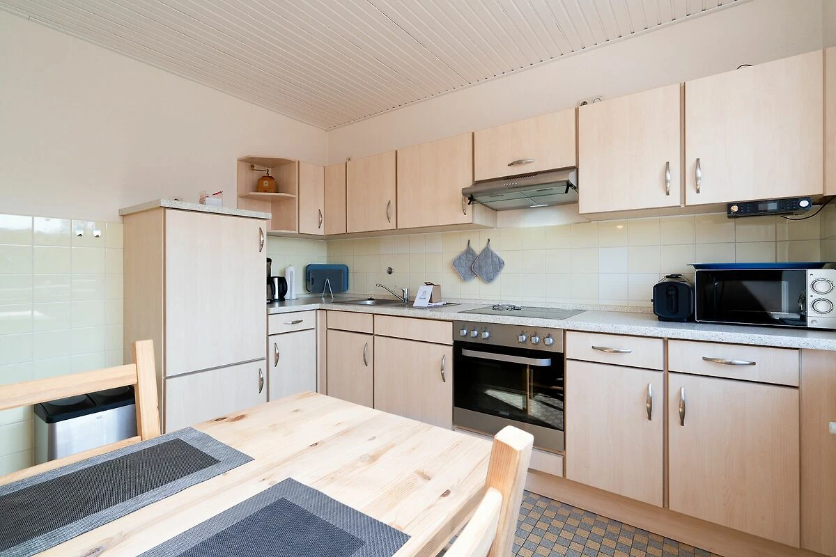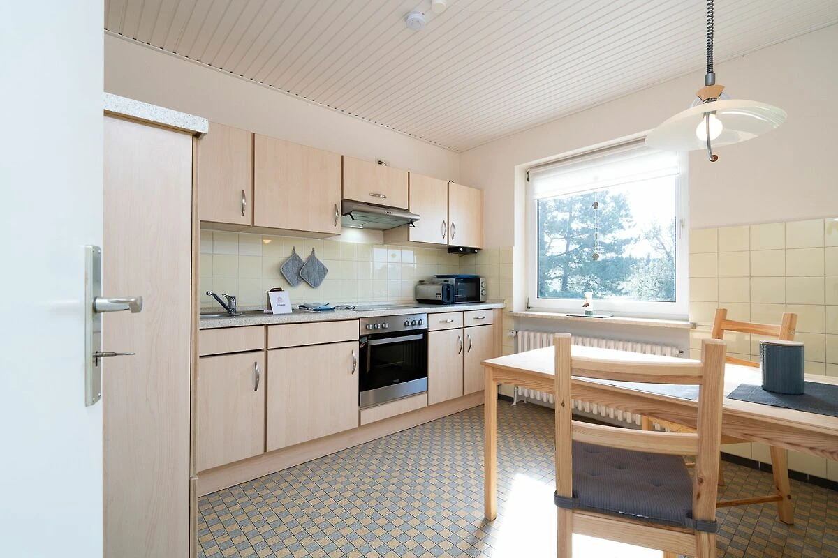 Diese charmante 60 m² große Ferienwohnung im 1. Obergeschoss bietet Platz für zwei Gäste und heißt auch Hunde herzlich willkommen. Die separate Küche ist voll ausgestattet und verfügt unter anderem über eine Mikrowelle, Kaffeemaschine und Toaster. Ein komfortables Schlafzimmer und ein modernes Duschbad mit Haartrockner sorgen für einen angenehmen Aufenthalt. Der großzügige 900m² eingezäunte Außenbereich lädt mit einer Terrasse mit Grillplatz, Markise, Sitzmöglichkeiten, Strandkorb und Sonnenliegen zum Entspannen ein.