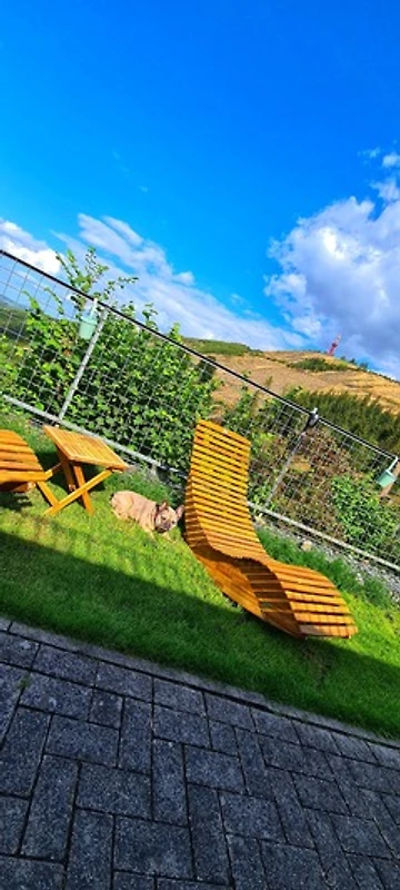 -im Garten 2 Sonnenliegen und Beistelltisch, eine Sitzgruppe+ Holzkohlegrill