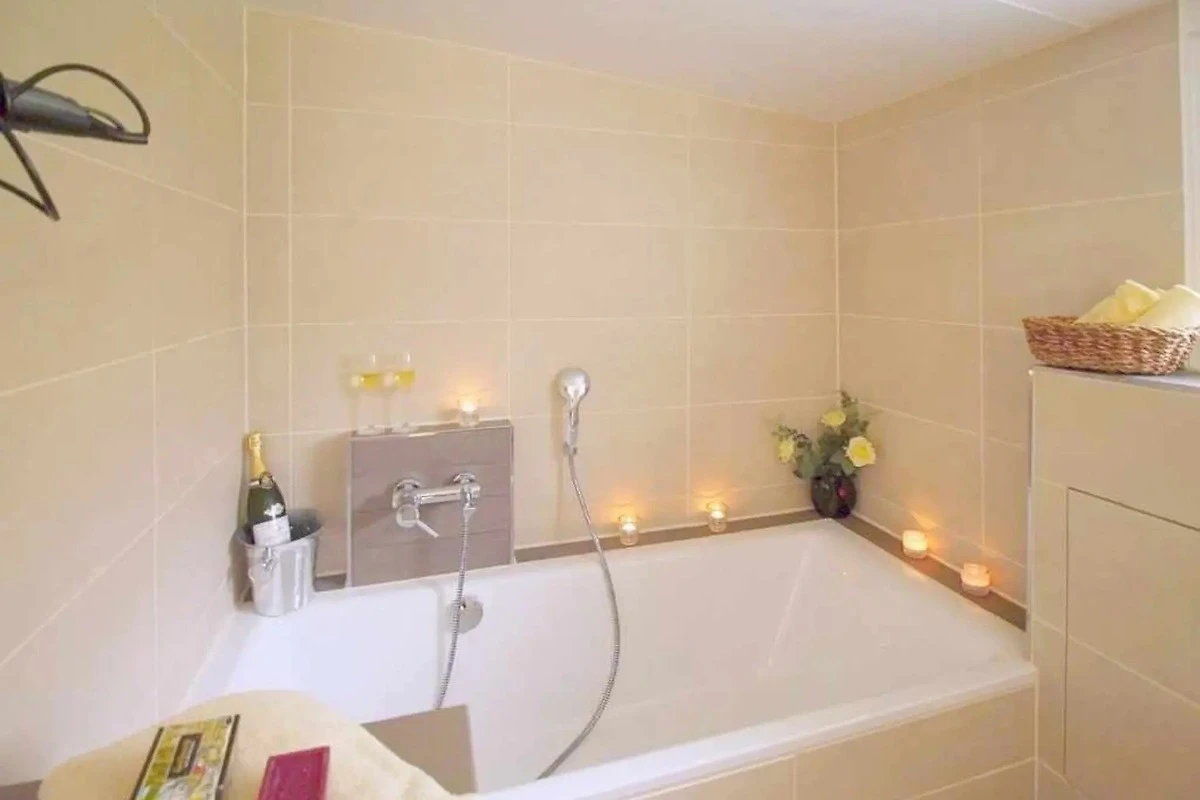 Bad mit Wanne, Kosmetikspiegel, Fön
