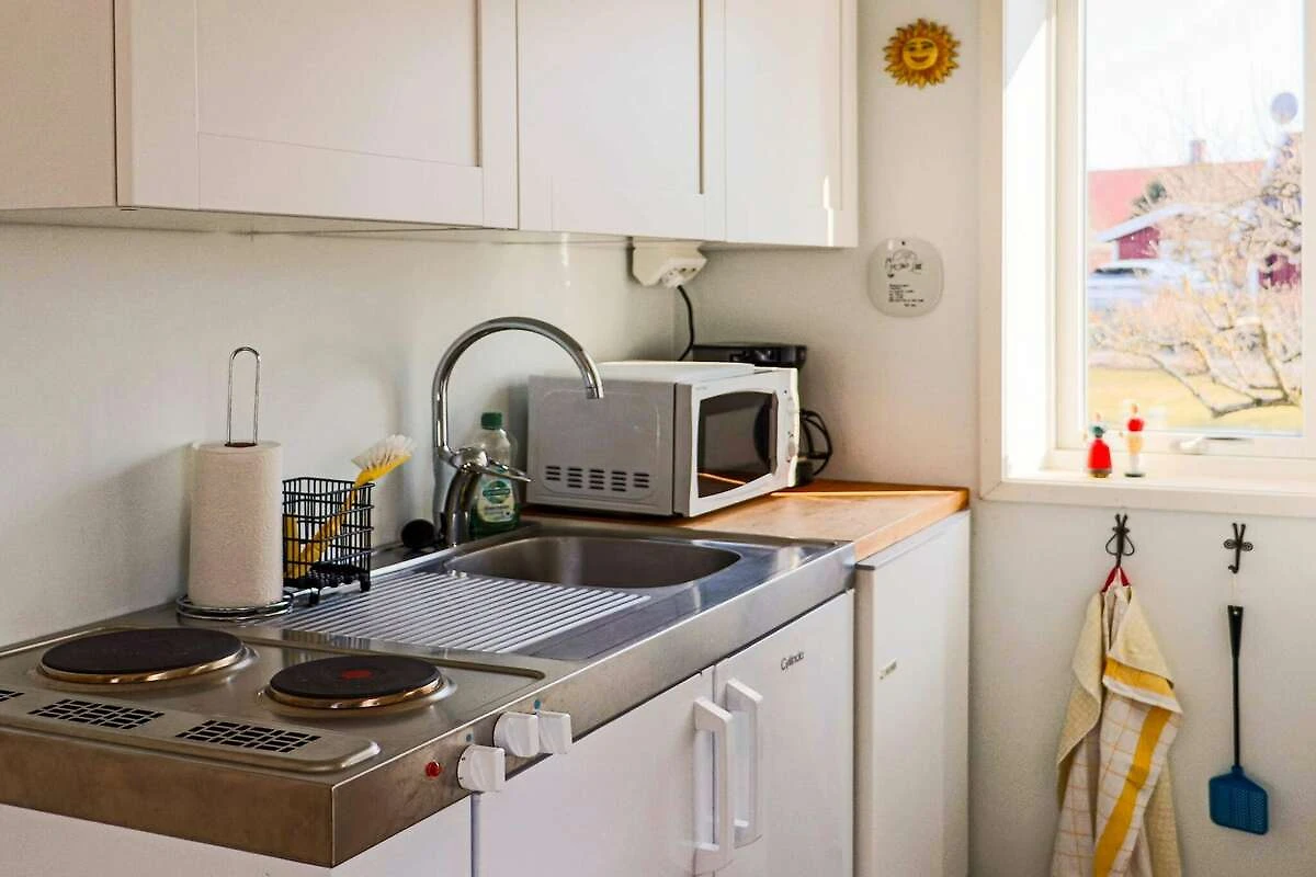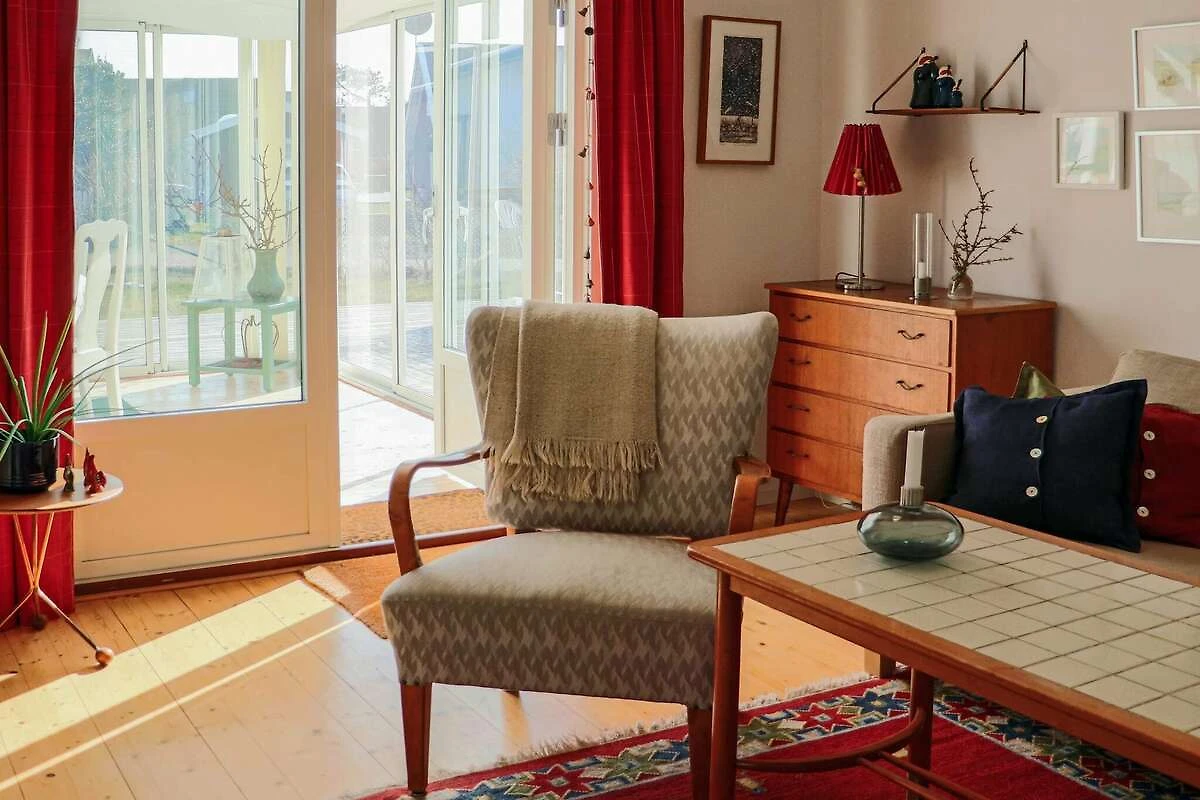 Küche(Kochherd(elektrisch), Kaffeemaschine, Spülmaschine, Kühl-/Gefrierkombination), Wohn-/Schlafzimmer, Wohn-/Schlafzimmer(TV(schwedische Fernsehsender), Chromecast), Schlafzimmer(Doppelbett), Schlafzimmer(2x Einzelbett), Badezimmer(Waschbecken, Dusche, Toilette, Waschmaschine), Badezimmer(Waschbecken, Dusche(von außen erreichbar), Toilette(von außen erreichbar)), Wintergarten, Heizung(elektrisch), Garten, Gartenmöbel, Parkplatz, Luft-Luft-Wärmepumpe