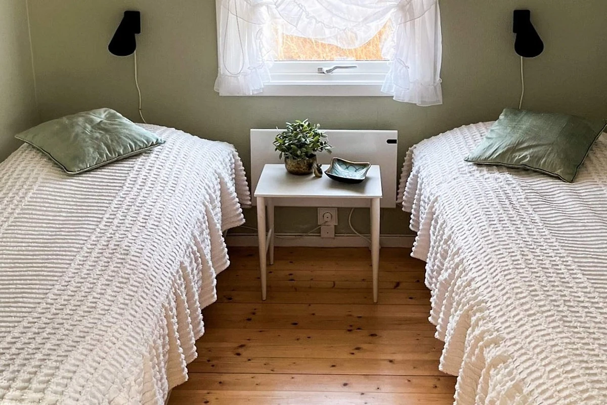 A holiday paradise with a great location not far from Vejbystrand's cozy harbor. There are restaurants, an ice cream parlor and a lovely sandy beach. The house is beautifully nestled in a beautiful green plot. Enjoy relaxing on one of the patios or the glass-enclosed outdoor room. A fairly newly built annex with both a bathroom and a kitchenette makes this accommodation extra attractive. The house has a tasteful mix of older charm and modern comfort during the renovation. The kitchen is open to one of the living rooms and here there is a TV with chromecast. Half a flight of stairs down there is another living room with a dining area. One bedroom has a double bed and one has two single beds. The house has an attached spacious glass-enclosed outdoor room with a dining table. Outside there is a terrace with several outdoor furniture and a barbecue. Between the house and the annex there is another patio with furniture. The annex has a bedroom with a double bed, bathroom with shower and a kitchenette. In the middle part there is a sofa bed for two people. The owner has two bicycles at the house that you are welcome to use. Vejbystrand is a vibrant summer resort. Vejbybadet has a pool that is heated in the summer. The beach is child-friendly. Here you will find everything you need for a successful holiday. The coast from Ängelholm to Torekov has several small, local spots. The Bjäre peninsula has become famous for its potato fields and it is not uncommon for the first new potatoes of the season to be delivered from here. Vegetables, meat and potato vodka are locally produced on a small scale and give a feeling of love and quality when you visit one of the many farm shops. Torekov's picturesque harbour is lined with many small restaurants. Ferries run from the harbour to Halland's Väderö. Here you will find a magically beautiful nature reserve. Ängelholm offers an exciting mix of small specialist shops, exclusive boutiques and several large chains. Ängelholm's Hembygdspark is an oasis for the whole family. The park houses a zoo, museum buildings and a playground for the younger ones. There are walking paths, rest areas and places to eat. For those interested in fishing, there is a varied sport fishing in Rönne å and Västersjön. A fishing license is required. There are several golf courses in the area, the closest being Åkaregårdens golf club.