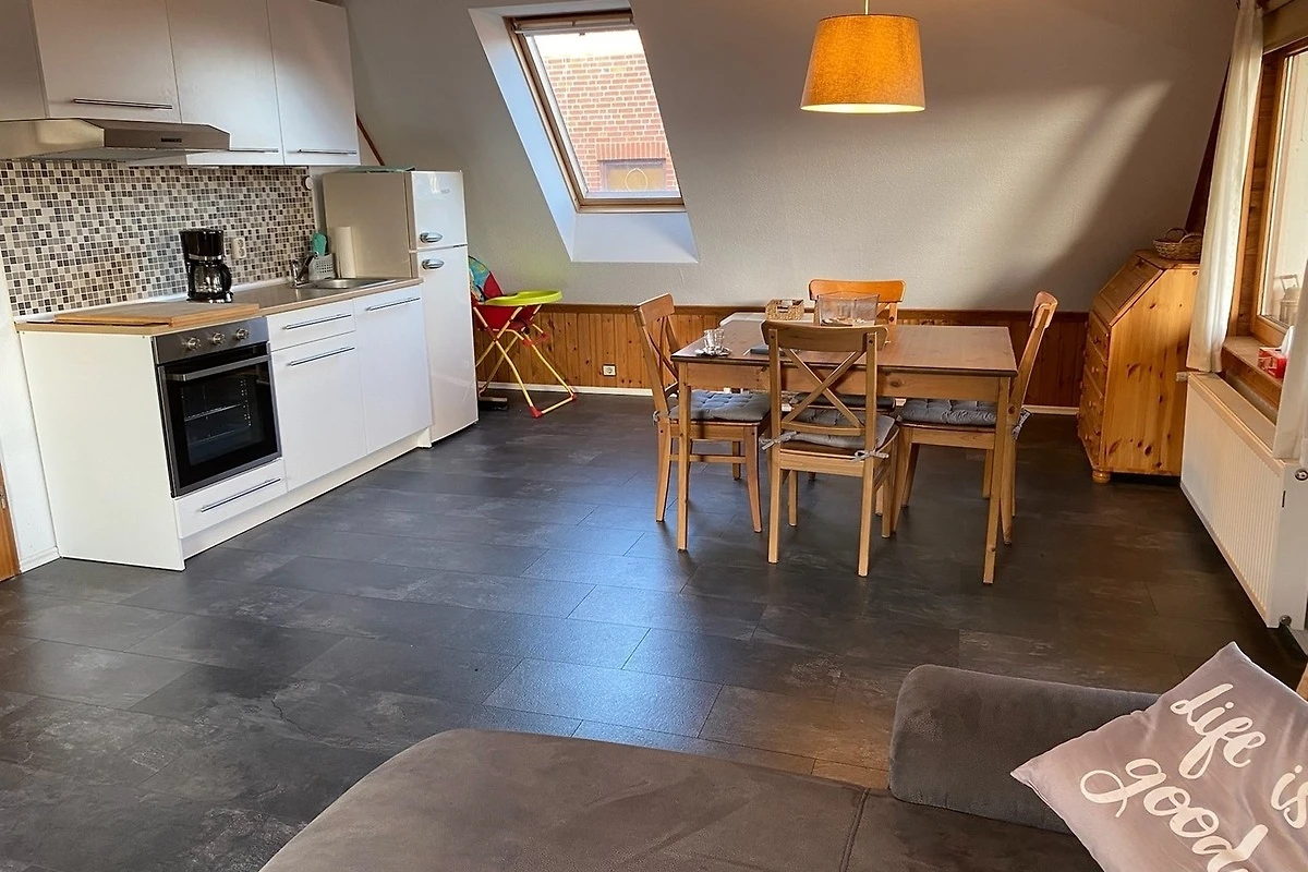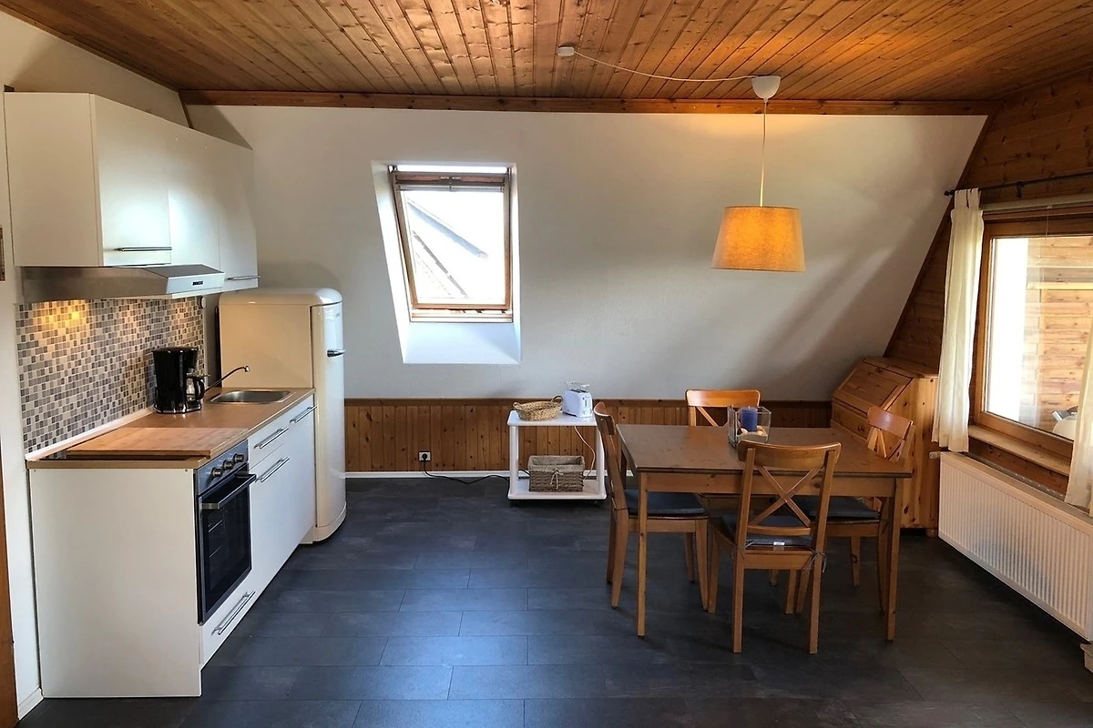 Die Küche ist mit allem ausgestattet, was für die Zubereitung geschmackvoller Mahlzeiten benötigt wird. Neben Kühlschrank, Herd mit 4 Kochstellen und Backofen sind Kaffeemaschine, Wasserkocher, Toaster, Mixer und Eierkocher vorhanden. Weiterhin gibt es eine umfangreiche und gute Auswahl an Töpfen, Pfannen, umfangreichem Geschirr, Gläser und Besteck. Für kleinere Kinder steht ein Hochstuhl bereit.