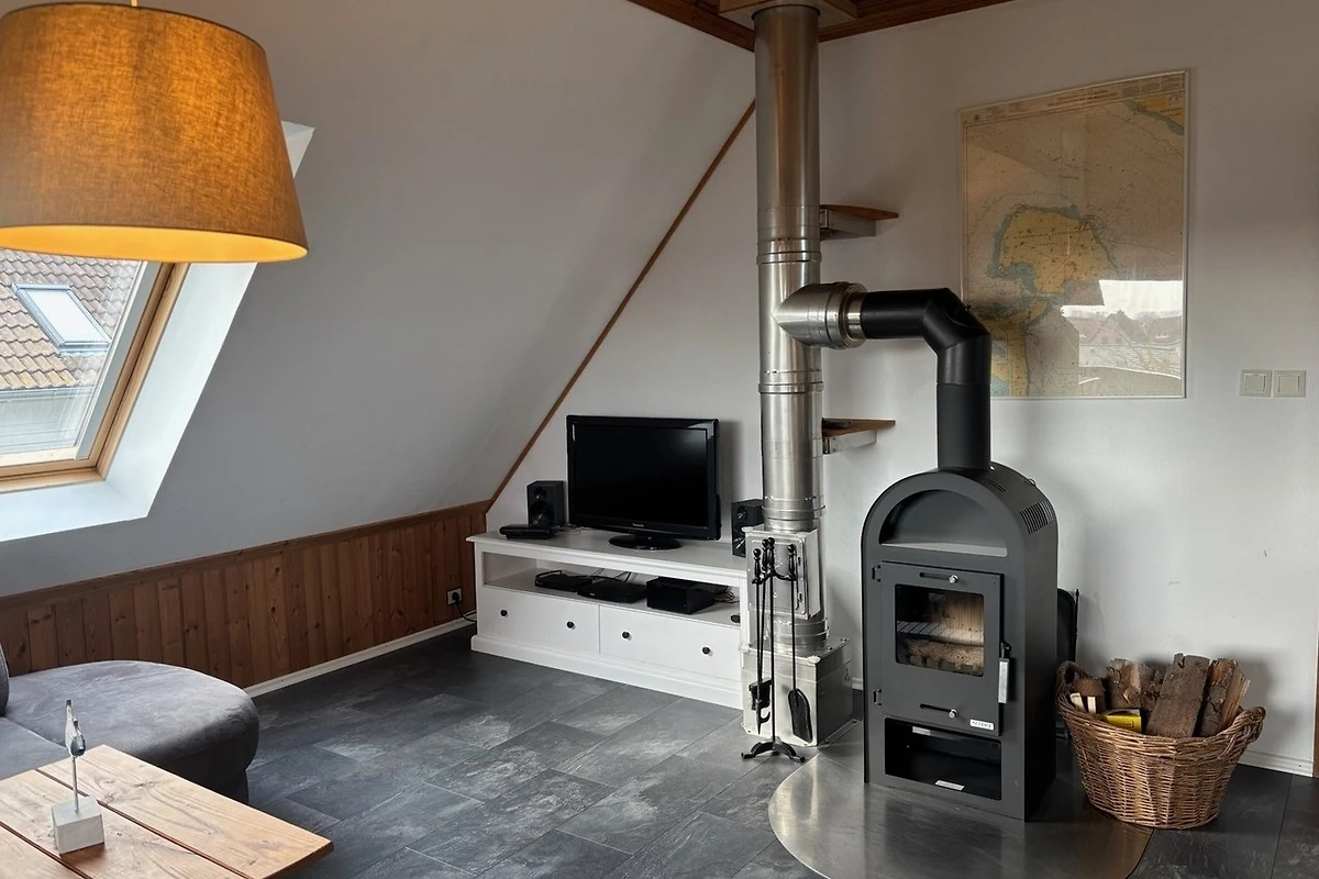 Das lichtdurchflutete Wohn-/Esszimmer ist behaglich eingerichtet. Neben WLAN, TV-Gerät mit DVD-Player und Soundsystem ist auch eine umfangreiche Spielesammlung vorhanden. Für gemütliche Abende am Kamin wird gerne Brennholz zur Verfügung gestellt.
