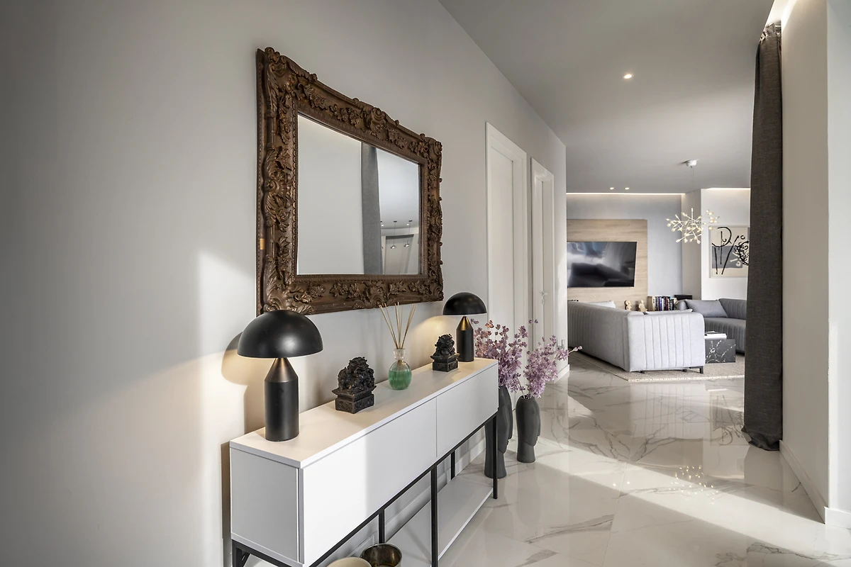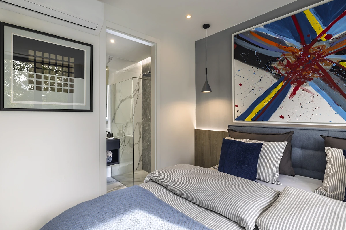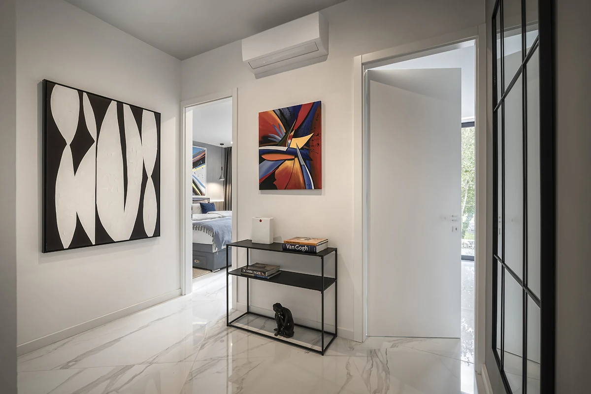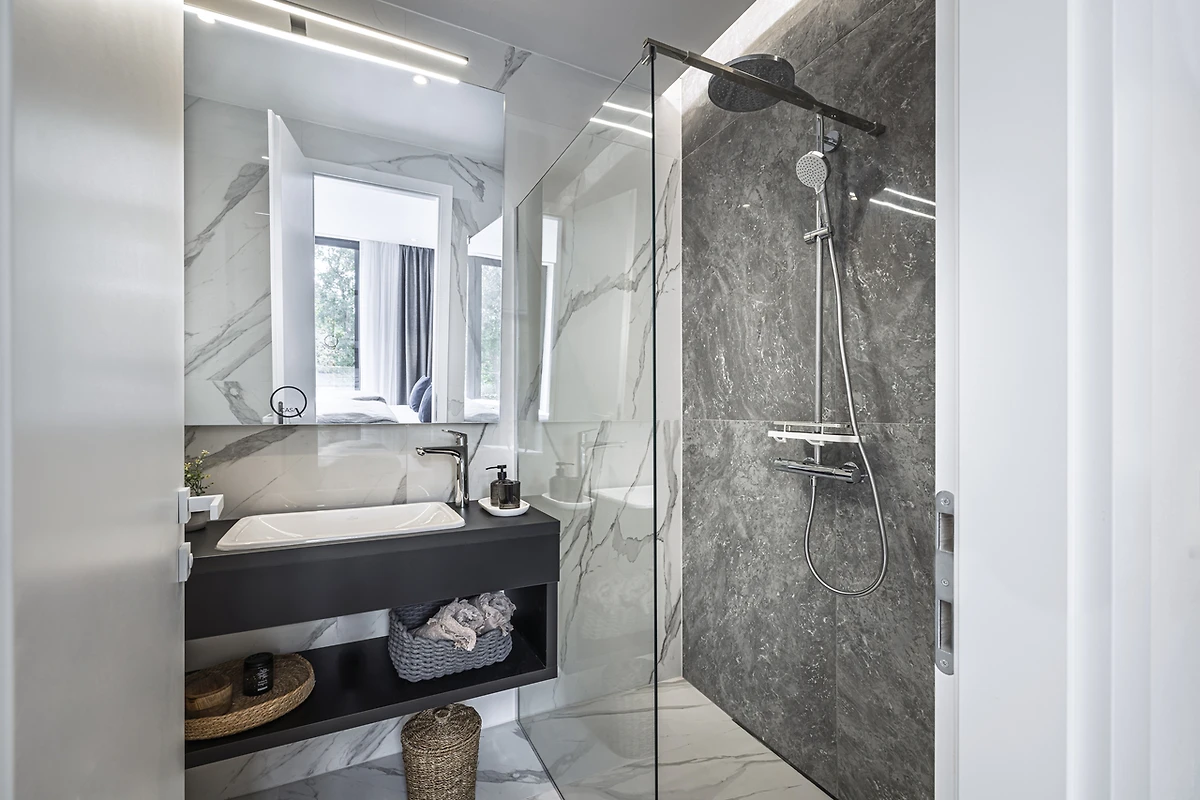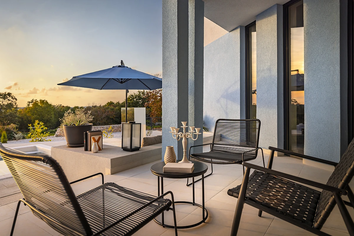Casa Q ist eine moderne Villa mit überdachten Nord- und Südterrassen, eingebettet in die ländliche Landschaft Zentralistriens, mit Blick auf das grüne Lim und den Ort Kringa. Ihre Hauptterrasse, überdacht, mit eingebauten Sonnenliegen und beheiztem Pool, liegt nach Süden ausgerichtet und garantiert ganztägige Sonne mit wunderschönen Sonnenuntergängen. Die nordseitige überdachte Terrasse verfügt über eine moderne Außenküche, perfekt für Mahlzeiten und Unterhaltung im Freien. Das Haus bietet einen großen inneren Wohnraum, der über breite Glastüren mit beiden Terrassen verbunden ist, die einen nahtlosen Übergang zwischen Innen- und Außenbereich schaffen. Mit drei eleganten Schlafzimmern, jedes mit eigenem Bad, kann diese Immobilie bequem bis zu 8 Personen unterbringen und bietet einen luxuriösen Raum zum Entspannen. Der Innenraum kann sich mit einer modernen, designerischen Ästhetik rühmen, verziert mit luxuriöser Endbearbeitung, was eine raffinierte und gemütliche Atmosphäre im ganzen Haus schafft. Es gibt keine Häuser, die die Sicht versperren, nur eine ruhige grüne Landschaft und einen weiten blauen Himmel. Das Haus ist leicht zugänglich, nur 10 Minuten von der Istrischen Hauptstraße entfernt, was es praktisch, aber dennoch ruhig für eine Erholungspause macht.
