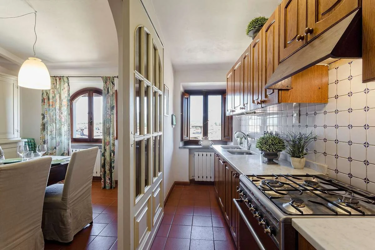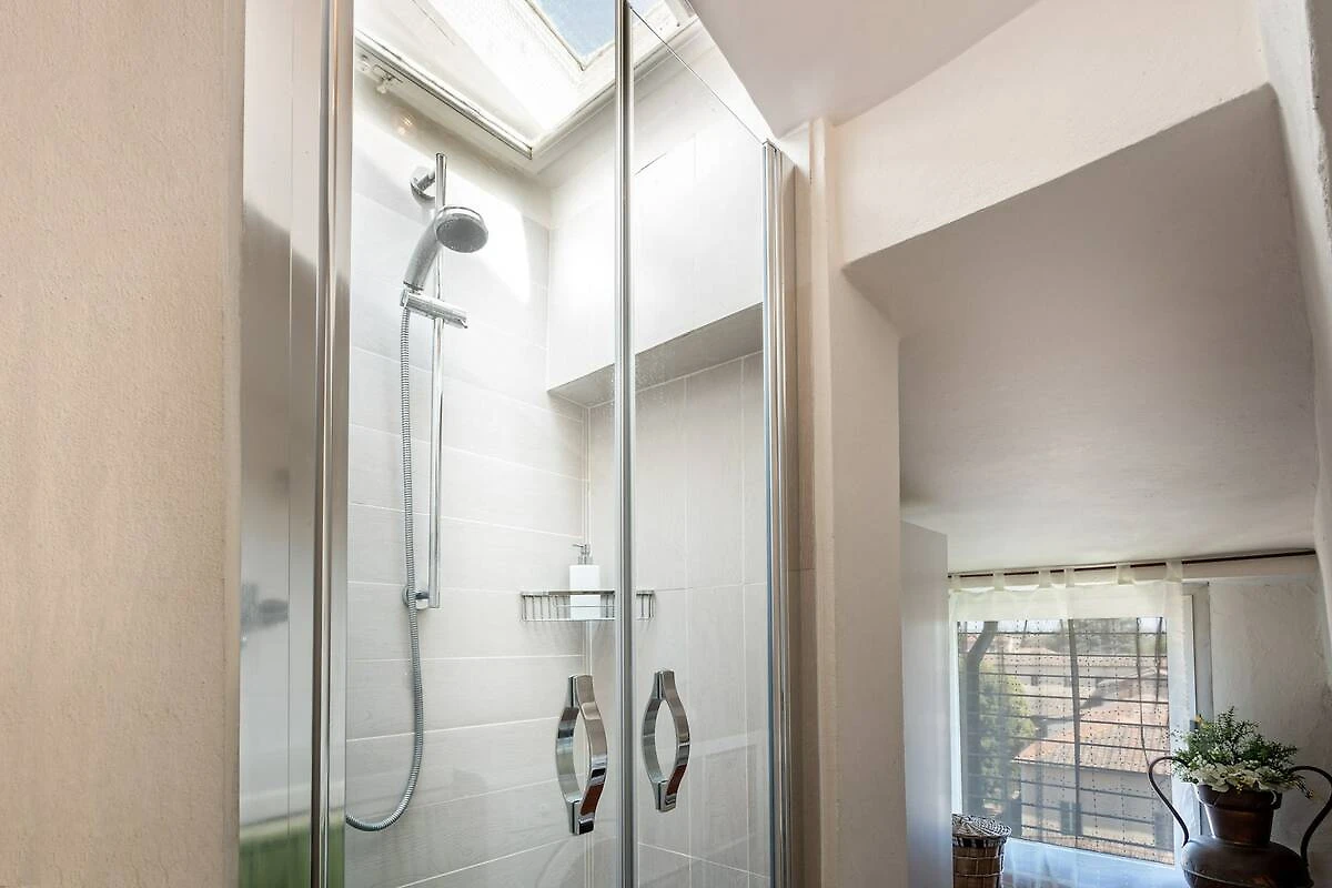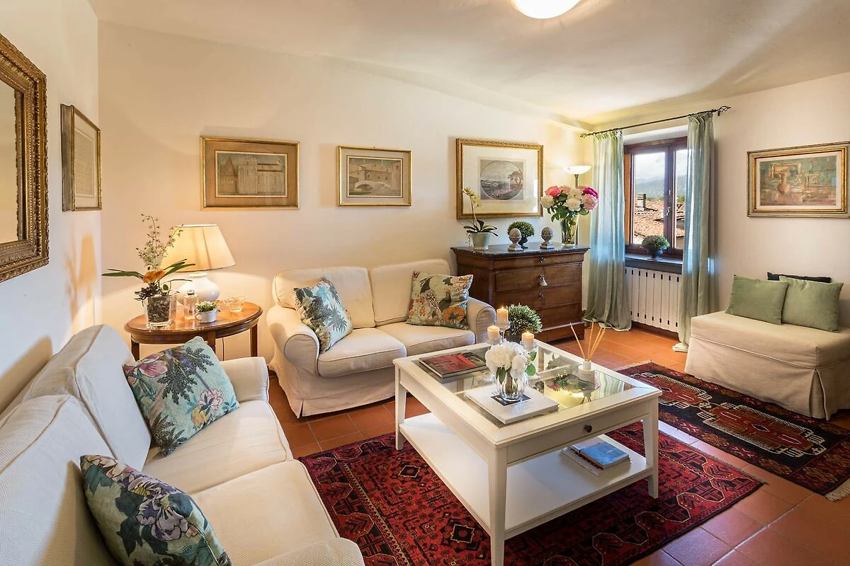 Dank seiner Lage im vierten Stock ist das Apartment lichtdurchflutet und bietet einen spektakulären Blick auf die malerischen Dächer von Lucca. Der durchdachte Innenbereich umfasst einen einladenden Eingang, ein geräumiges Wohnzimmer, eine voll ausgestattete Küche, ein separates Esszimmer und zwei komfortable Doppelzimmer. Ein modernes Badezimmer mit integrierter Dusche rundet den Komfort dieser eleganten Residenz ab. Zur Unterhaltung stehen den Gästen internationale Satellitenkanäle zur Verfügung und kostenloses WLAN steht im gesamten Gebäude zur Verfügung.