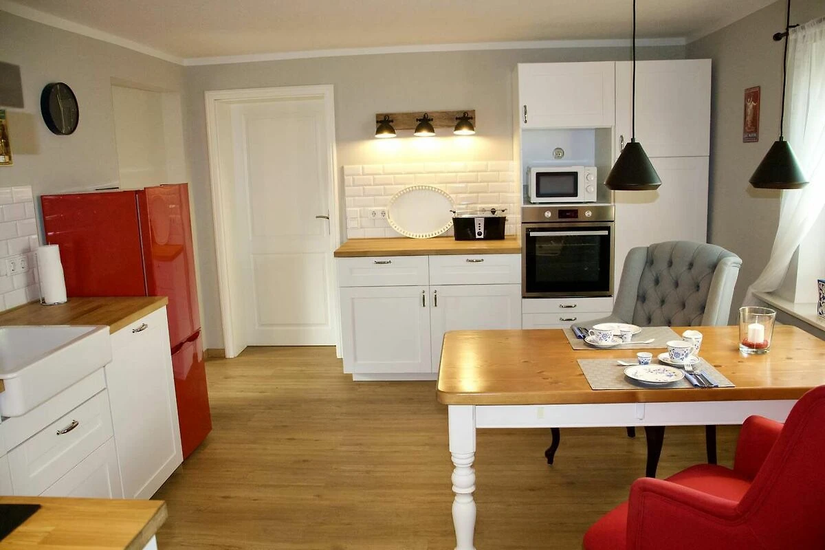 Wir haben uns sehr wohl gefühlt, die Unterkunft war auf unsere Bedürfnisse ausgerichtet, war liebevoll und umfassend ausgestattet. Sogar eine kleine Bibliothek war vorhanden. Die Sitzgelegenheit im Hof konnte genutzt werden. Ein netter Kontaktzur nebenan wohnenden Vermieterin war vorhanden. Mitgebrachte Fahrräder konnten netterweise im anliegenden Schuppen sicher untergestellt werden . Das war richtig gut. Reklamation eines Badethandtuches mit Stockflecken bei Ihnen wurde prompt bearbeitet und erneut zur Verfügung gestellt. Als verbeserungsfähig anzuführen wäre die Sauberkeit. Es waren sehr viele Spinnweben von größerem Ausmaß in der gesamten Wohnung vorhanden. Wir würden wieder dieses Objekt anmieten.