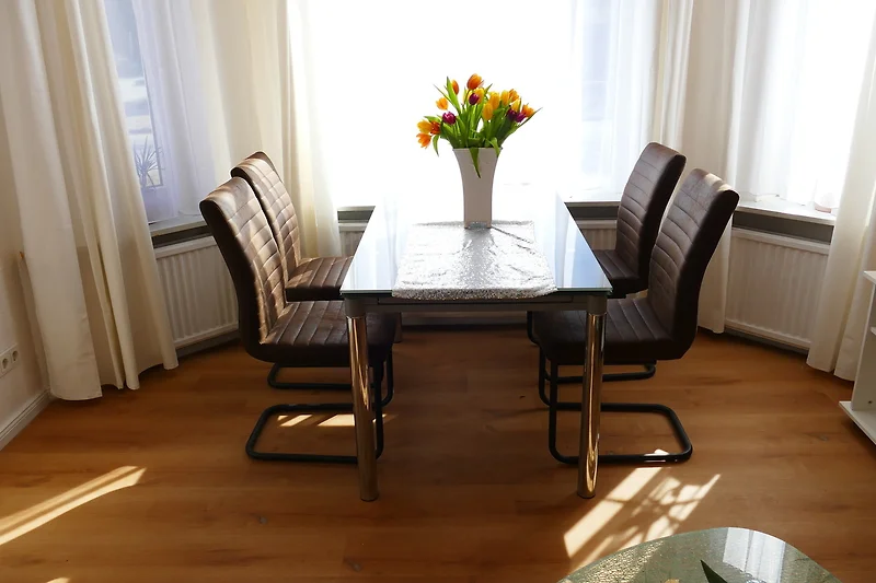 Das Apartment verfügt über einen Zugang zum Garten, was den Gästen Entspannung im Freien ermöglicht. Familien mit Kindern fühlen sich hier wohl, denn die Unterkunft ist kinderfreundlich. Die Kommunikation mit dem Vermieter ist bei Bedarf auch bequem per WhatsApp möglich. Somit ist das Kapitänshaus "Schäfer" sowohl für Feriengäste und Familien als auch für Monteure und Geschäftsreisende die ideale Wahl.