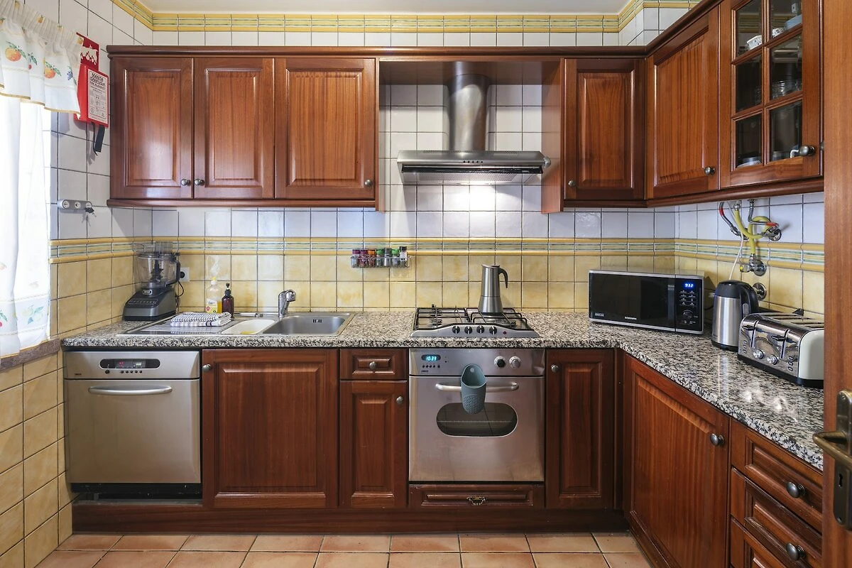 Das Haus verfügt über zwei geräumige Schlafzimmer, die Komfort und Entspannung für bis zu vier Gäste bieten. Die Master-Suite mit einem komfortablen Kingsize-Bett bietet einen ruhigen Rückzugsort, während das zweite Schlafzimmer mit zwei Einzelbetten ausgestattet ist – ideal für Freunde oder Kinder. Genießen Sie den Komfort einer modernen Küche, die mit allem ausgestattet ist, was Sie für köstliche Familienmahlzeiten benötigen. Genießen Sie diese im Essbereich oder im Freien auf der möblierten Terrasse mit Blick auf das glitzernde Meer. Für zusätzlichen Komfort verfügt jedes Zimmer über eine individuell regulierbare Klimaanlage, und das gemütliche Wohnzimmer bietet einen Flachbildfernseher mit Satellitenempfang für Ihre Unterhaltung. Bleiben Sie mit kostenlosem Highspeed-WLAN in Verbindung und verbringen Sie Ihre Tage in der Sonne am gemeinschaftlichen Außenpool.