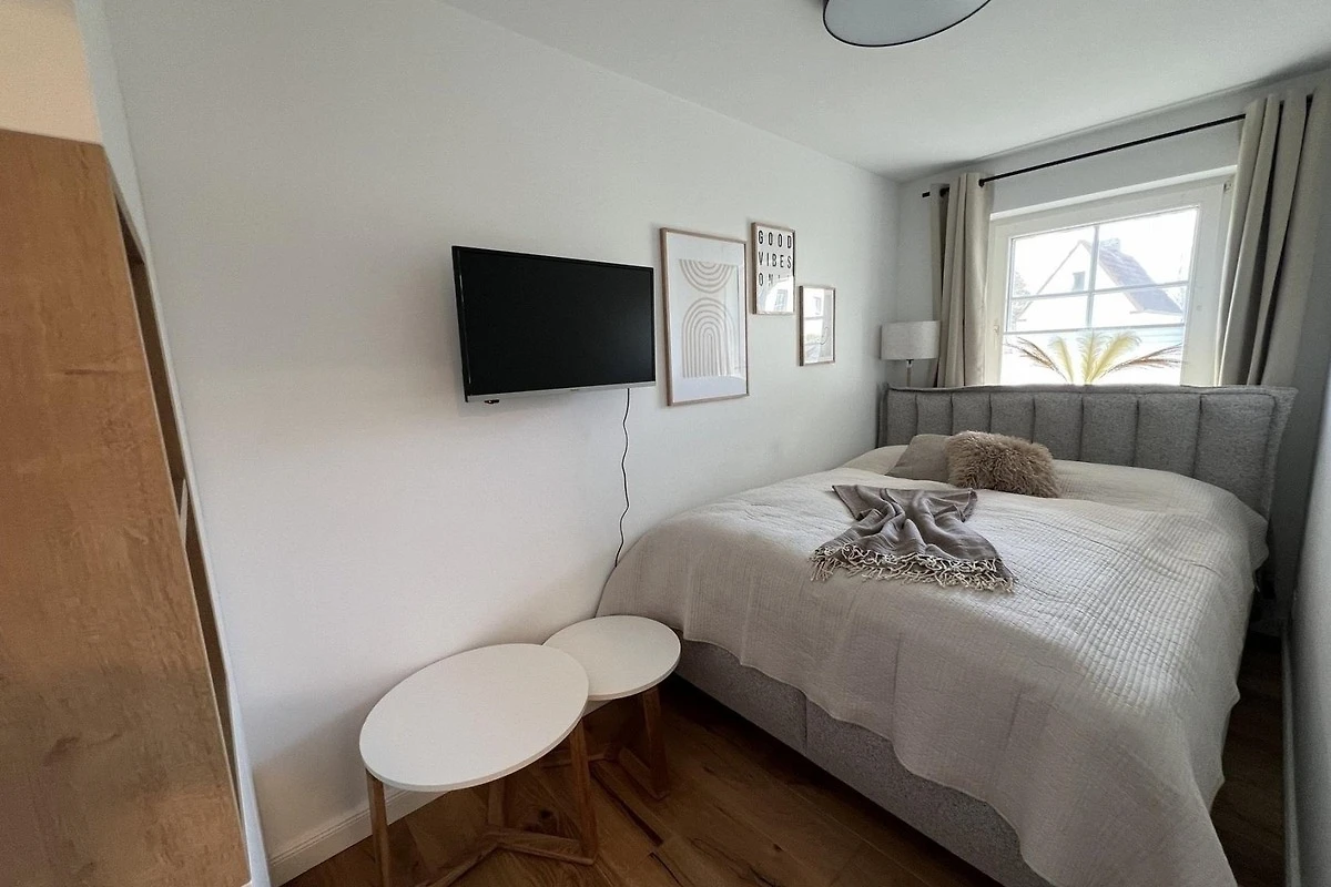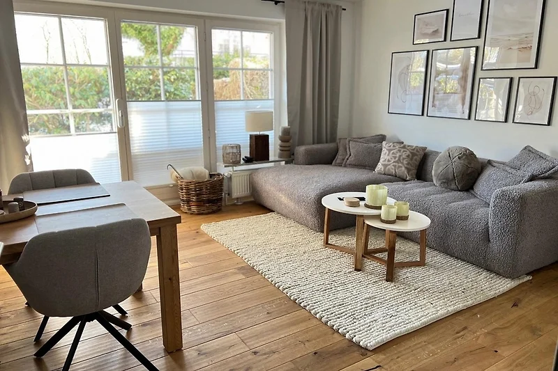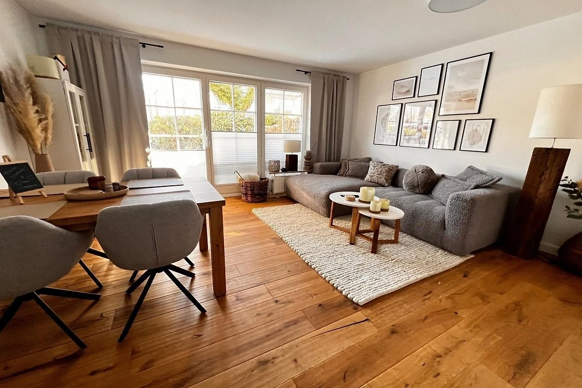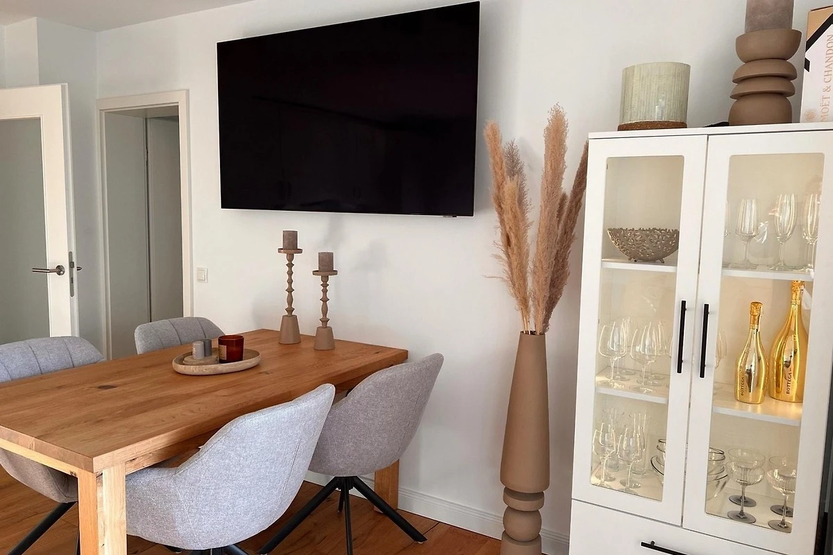Willkommen in der Cosy Dream Scharbeutz Dein ganz persönlicher Wohlfühlort an der Ostsee!Diese frisch renovierte Ferienwohnung (Ende 2024) bietet Dir auf 55 m² alles, was Du für einen unvergesslichen Aufenthalt an der Lübecker Bucht brauchst. Die Cosy Dream Scharbeutz besticht durch ihren modernen Skandi-Style, der mit klaren Linien, warmen Farben und hochwertigen Materialien eine gemütliche und zugleich elegante Atmosphäre schafft. Hier trifft Komfort auf Stil ideal für Deinen Ostseeurlaub!Die Wohnung verfügt über zwei separate Schlafzimmer, die jeweils mit einem komfortablen Doppelbett (4 Erwachsene oder 2 Kinder ab 8 Jahren) ausgestattet sind. So kannst Du die Nachtruhe in absoluter Ruhe geniessen. Das Badezimmer ist ein Highlight: Mit einem Doppelwaschbecken, Fussbodenheizung und modernen Akzenten bietet es Dir eine perfekte Wohlfühloase zum Entspannen und Frischmachen.Im grosszügigen Wohnzimmer findest Du nicht nur eine gemütliche Sofaecke, sondern auch eine moderne Küchenzeile, die mit allem ausgestattet ist, was Du für die Zubereitung Deiner Lieblingsgerichte benötigst. Und das Beste: Vom Wohnzimmer aus gelangst Du direkt auf die eigene Terrasse, die mit einer Lounge-Gruppe zum Verweilen und Entspannen einlädt. Hier kannst Du den Tag bei einem guten Glas Wein oder einer Tasse Kaffee ausklingen lassen und die frische Ostseeluft geniessen.Für Deinen Komfort ist die Cosy Dream Scharbeutz mit modernster Technik ausgestattet: Drei TV-Geräte sorgen für Unterhaltung, das internetradio "Teufel" liefert erstklassigen Sound für Deine Lieblingsmusik, und der hochwertige ghd Helios Föhn sorgt für gepflegtes Haar auch an windigen Tagen.Zudem gehört zur Wohnung ein eigener Parkplatz, sodass Du bequem und stressfrei ankommen kannst.Die zentrale Lage in Scharbeutz ist einfach ideal: In wenigen Minuten bist Du am Strand, an der Promenade oder in der Fussgängerzone perfekt für Spaziergänge, Shopping oder einfach zum Geniessen des Ostseeflairs.Erlebe in der Cosy Dream Scharbeutz Deinen perfekten Urlaub an der Ostsee ein Ort, an dem du Dich wie zu Hause fühlen wirst! Wir freuen uns, Dich bei uns begrüssen zu dürfen!