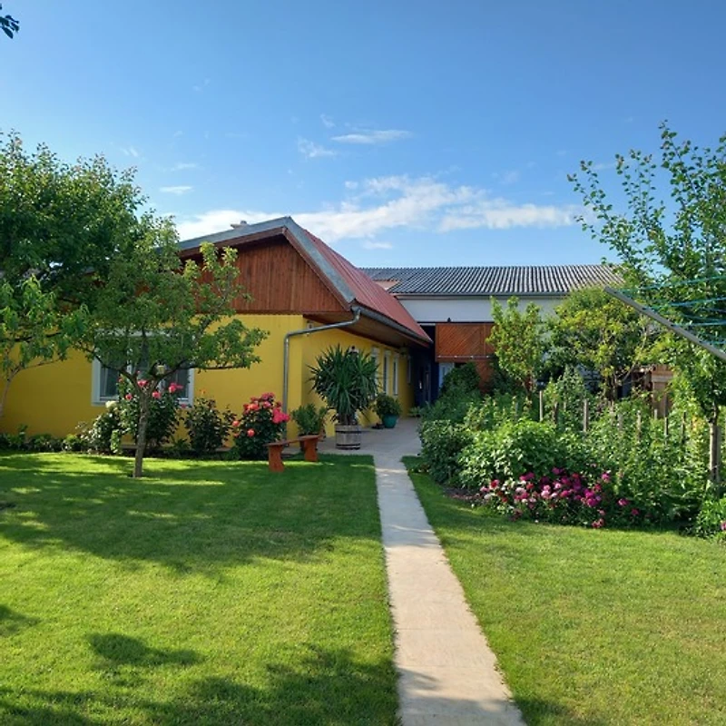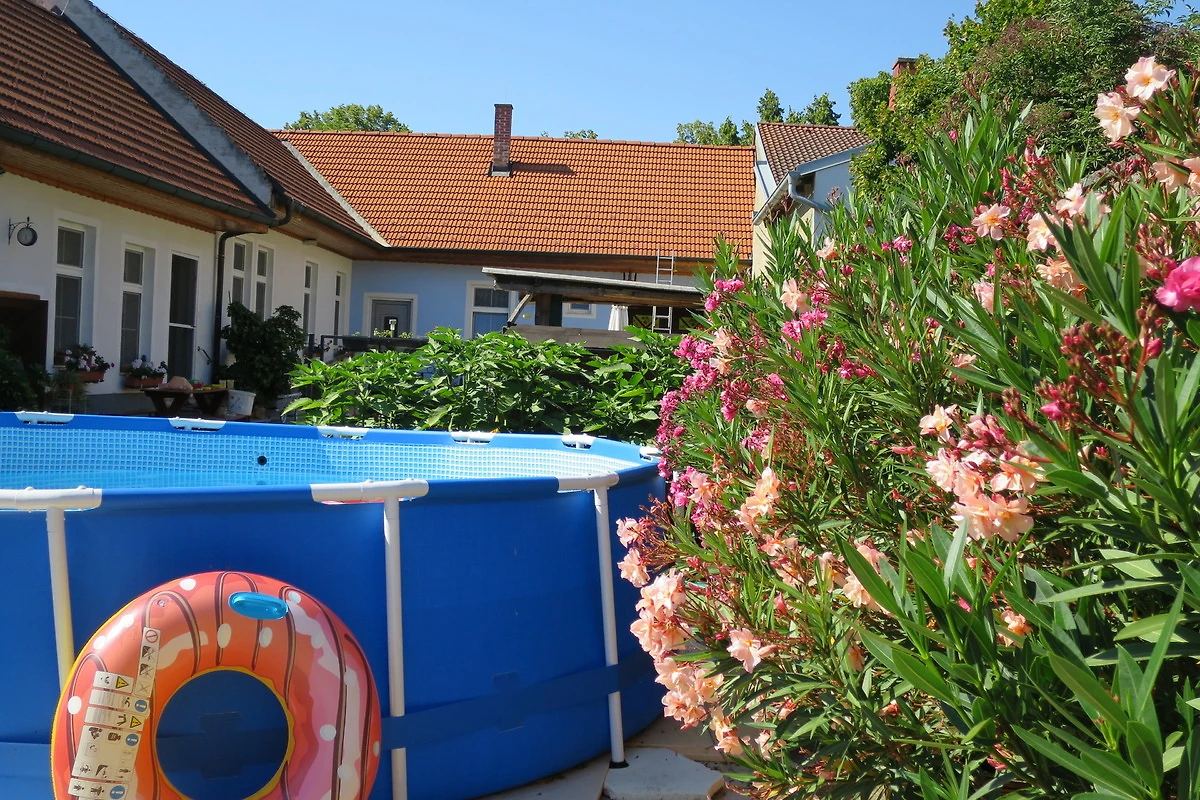 Top-Ferienwohnung der 4-Sonnen-Kategorie in Hofruhelage. Diese befindet sich in einem typischen burgenländischen, blumengeschmückten Streckhof. Auf 80 m² gibt es 2 Schlafzimmer, komplett ausgestattete Wohnküche (25 m²) mit einem kleinen Sofa, Bad, WC extra, Kabel-TV, Radio, gratis W-LAN, Burgenlandcard.