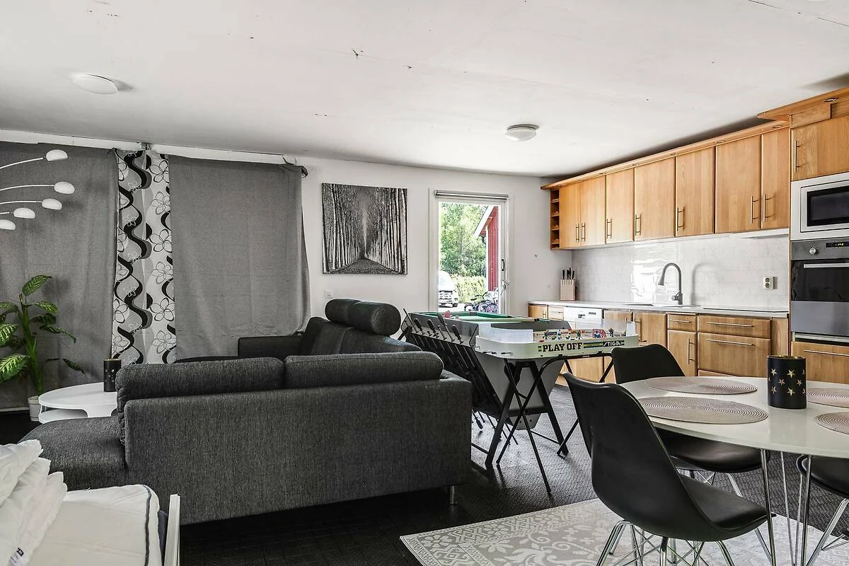 Willkommen im Haus Abborremala in Backaryd – Ihr Feriendomizil für bis zu 16 Personen! Hier genießen Sie einen erholsamen Familienurlaub, bei dem auch Ihr Hund herzlich willkommen ist. Im großzügigen Garten mit gepflegtem Rasen können Kinder spielen, während Sie auf der Terrasse entspannen oder am BBQ-Grill gemeinsam essen. Der Swimmingpool verspricht Badespaß für Groß und Klein. Im Inneren erwartet Sie ein stilvoll eingerichtetes Wohnzimmer mit Kamin und TV – perfekt für gemütliche Abende. Die offene Küche lässt mit Spülmaschine, Kühlschrank, Gefrierfach, Backofen, Mikrowelle, Wasserkocher und Kaffeemaschine keine Wünsche offen. Auch eine Waschmaschine und ein Trockner stehen bereit, ebenso wie ein Kinderbett und ein Hochstuhl für die Kleinsten. Zwei Schlafzimmer bieten komfortable Rückzugsorte, das moderne Bad ist mit Badewanne und Dusche ausgestattet. WLAN sorgt für beste Verbindung, Fahrräder laden zu Erkundungstouren ein. Langzeitmiete ist möglich, das Haus ist ausschließlich für Nichtraucher. Entspannen Sie sich, genießen Sie die Natur und erleben Sie unvergessliche Tage im Haus Abborremala! Sie haben auch die Möglichkeit ihr E-Auto bei uns gegen eine Gebühr aufzuladen.