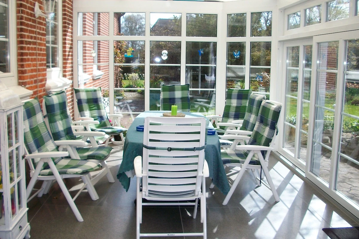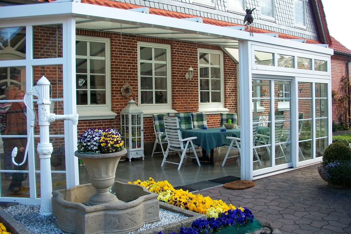 Sehr nette Vermieterin, schöner Wintergarten, keine Restaurants vor Ort