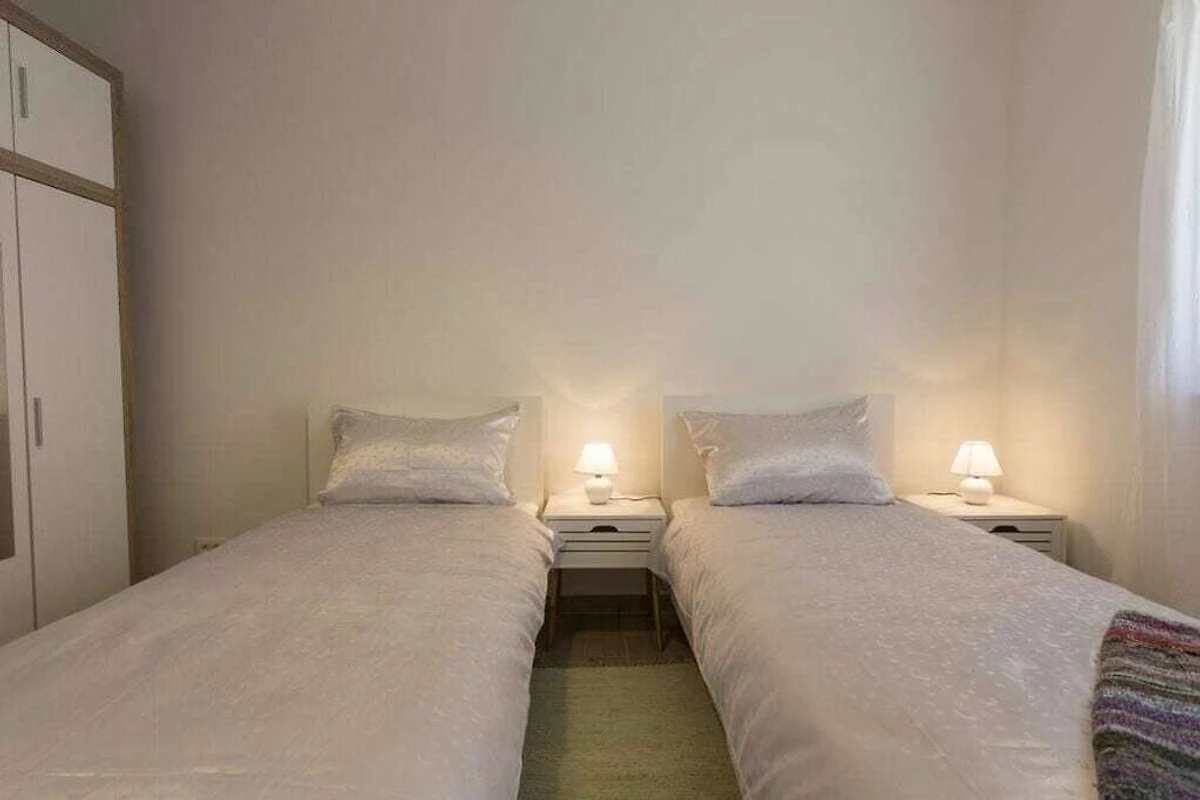 Parterre: (Eingangshalle(Klimaanlage), Esszimmer(Esstisch, Herd, Wasserkocher, Toaster, Kaffeemaschine, Backofen, Spülmaschine, Tiefkühlschrank, Klimaanlage), Wohn-/Schlafzimmer(Schlafcouch 1 Pers., TV, Klimaanlage), Schlafzimmer(Doppelbett), Schlafzimmer(Einzelbett, Einzelbett), Badezimmer(Dusche, Bidet, Handtücher inklusive), Badezimmer(Dusche, Toilette, Handtücher inklusive))