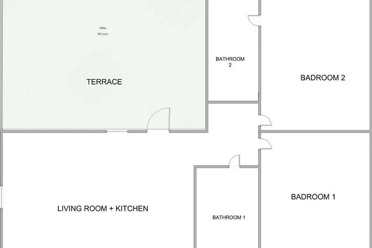 Freistehende Haus bestehend aus einer Küche, einem großen Wohnzimmer, zwei Badezimmern und zwei Badezimmern.