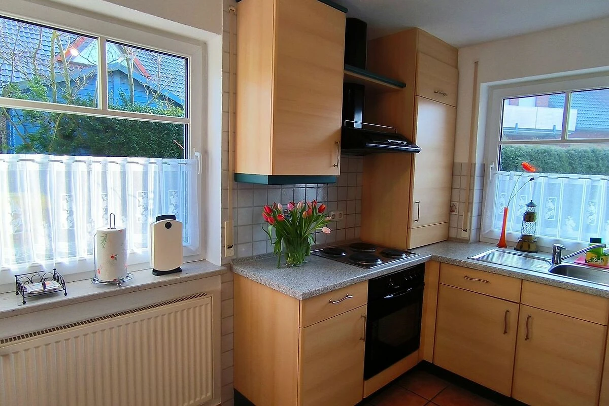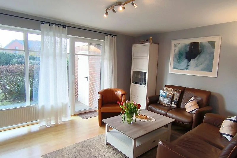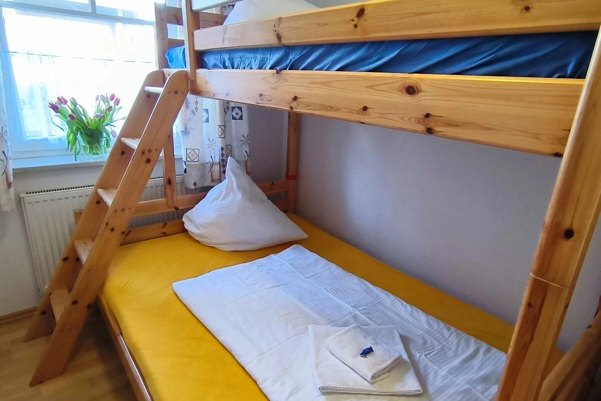 Die Haushälfte befinden sich im Erdgeschoss und bietet auf ca. 60 qm Platz für 4 bis 5 Personen, wobei folgende Belegung vorgesehen ist: