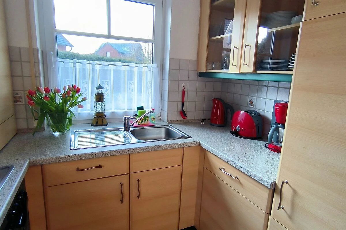 Der Wohnbereich hat eine offene Küche, die mit allem ausgestattet ist, was zum Kochen benötiget wird.