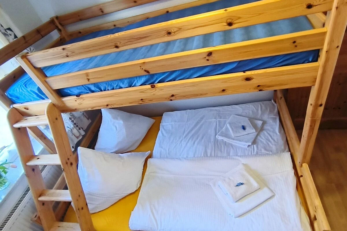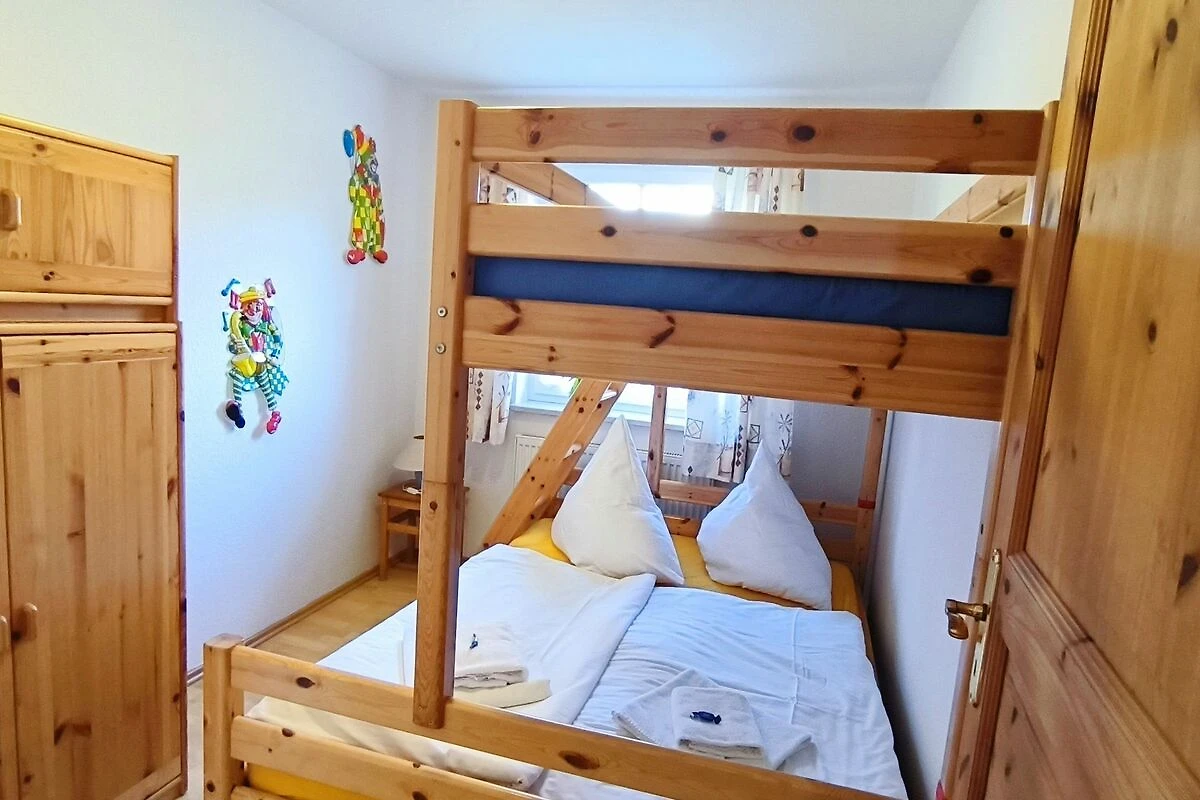 In dem Kinderzimmer werden sich die Kinder über ein Etagenbett freuen.