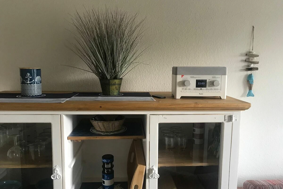 Die Ferienwohnung verfügt über kostenfreies WLAN und die Erstausstattung an Bettwäsche, sowie Hand- und Badetücher ist inklusive. Das Schlafzimmer verfügt über ein Doppelbett, im Wohnzimmer befindet sich zusätzlich eine Doppelschlafcouch, beide Räume mit Verdunklung. Darüber hinaus verfügt die Ferienwohnung über ein Bad mit Wanne und Duschabtrennung, Waschbecken, Föhn, Kosmetikspiegel, Ablagen und Staumöglichkeiten für Ihre Pflegeprodukte. Daneben liegt das separate WC mit kleinem Waschbecken. Die voll ausgestattete, offene Küche mit Mikrowelle, Kühlschrank mit Gefrierfach, moderner Herd mit Backofen, Wasserkocher, Kaffeemaschine und Toaster lässt keine Wünsche offen.