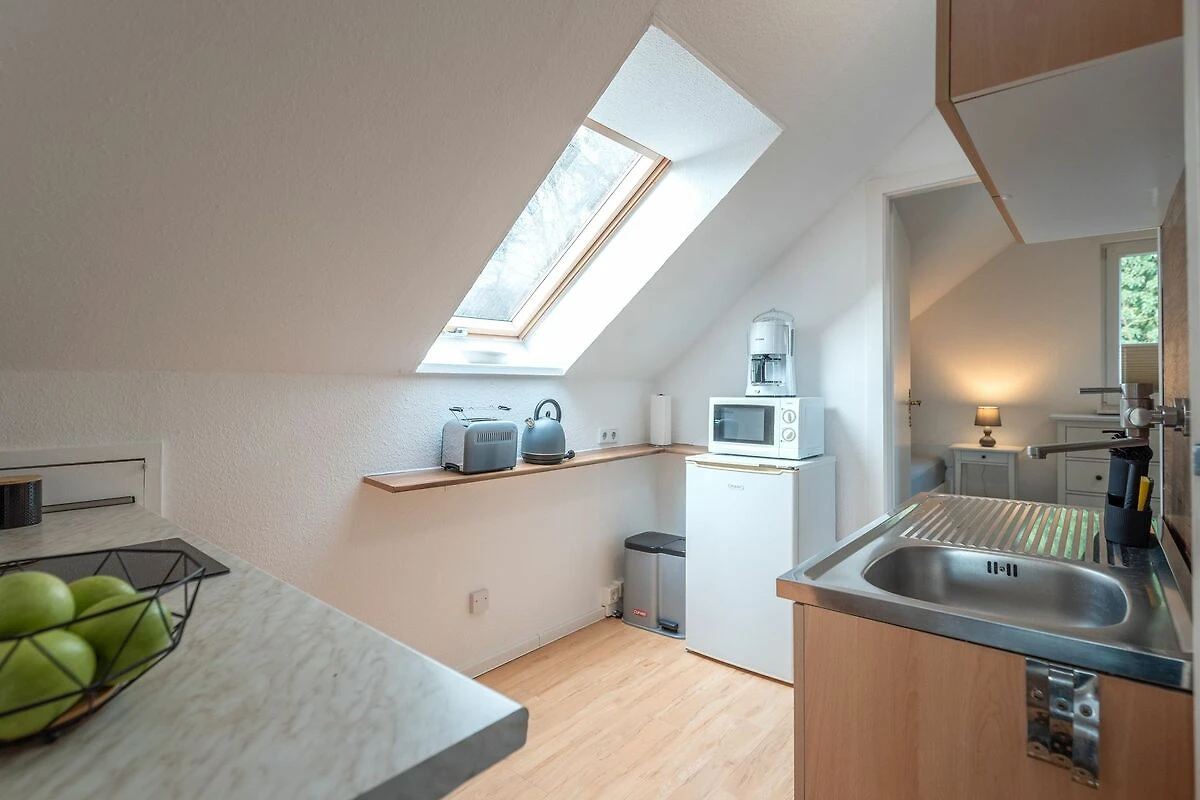 • Küche: Die separate, kompakte Küche bietet alles, was Sie für die Zubereitung von Frühstück oder kleinen Mahlzeiten benötigen.