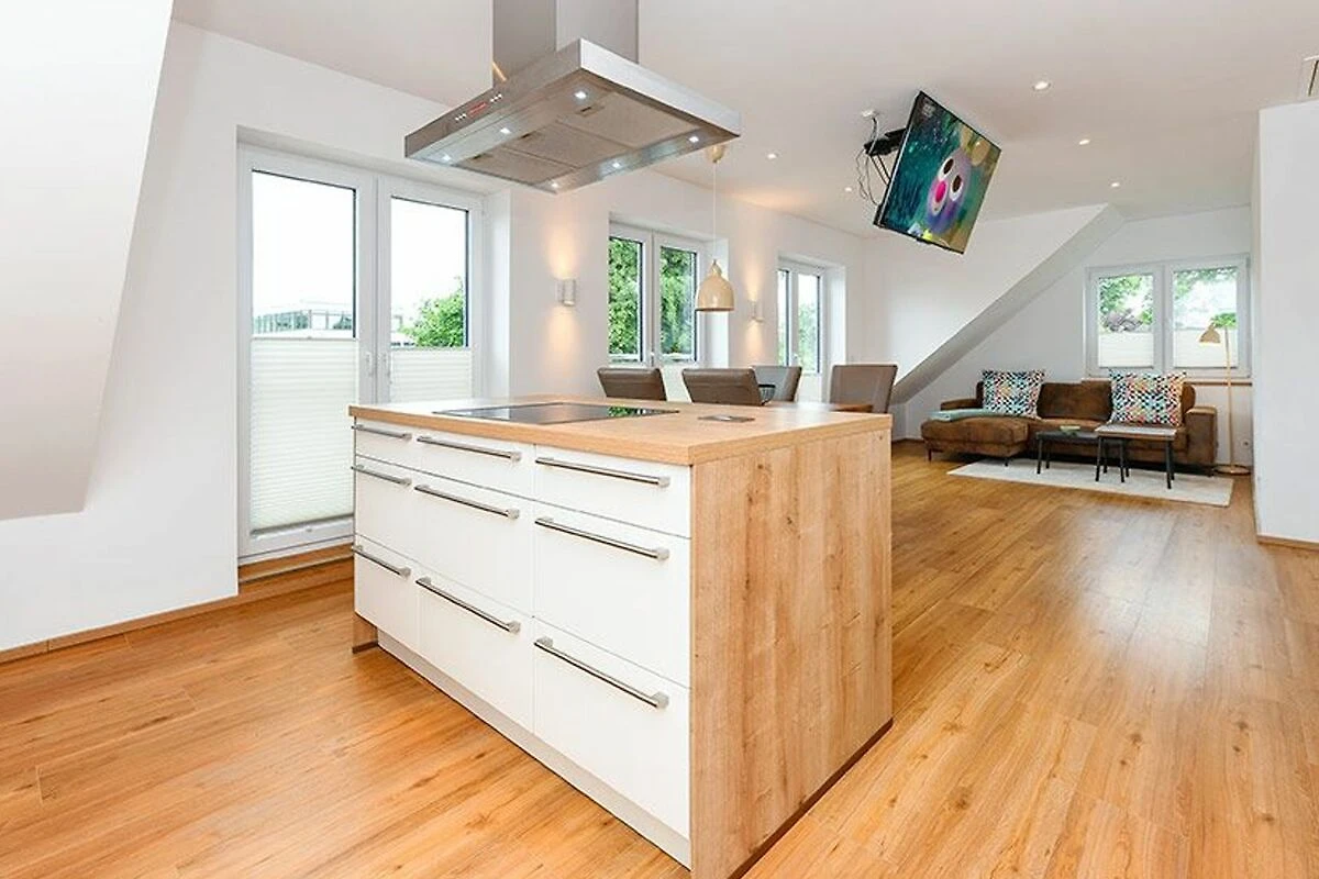 Die Ferienwohnung sind geschmackvoll, hell und freundlich eingerichtet und technisch hochwertig ausgestattet. Die Wohnung bietet eine schöne Dachterrasse mit schönem Ausblick über die Stadt.