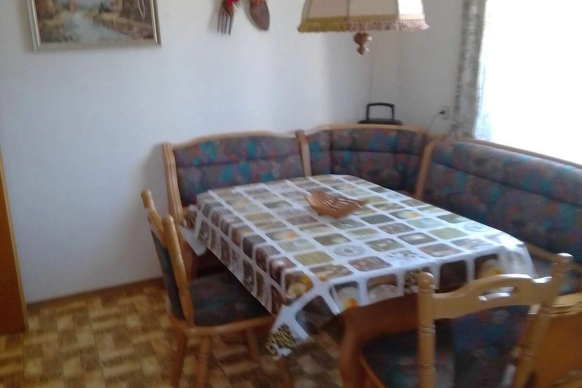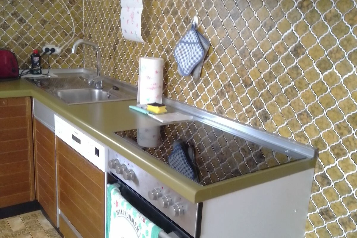Die geräumige Küche ist voll ausgestattet mit Allem, was man benötigt. In der Küche befindet sich eine grosse Essecke, ein Hochstuhl für Kleinkinder kann dazugestellt werden.