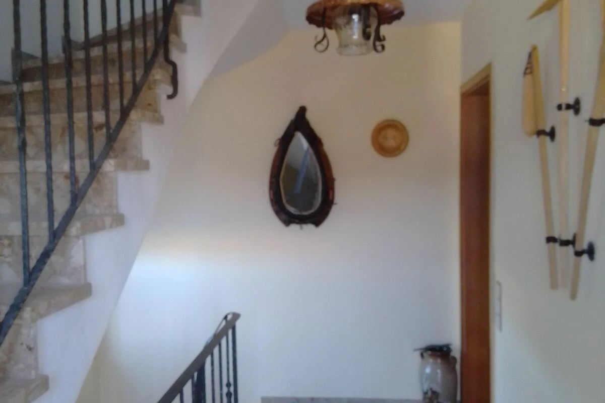 Eine Waschmaschine und eine Trocknungsmöglichkeit (Leinen und Wäscheständer) befinden sich separat in einem Waschraum im Keller.