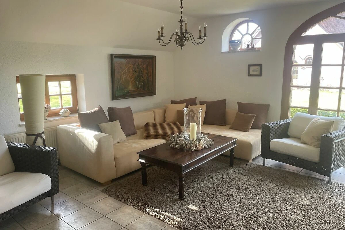 Wer die ländliche Ruhe sucht, ist hier genau richtig: Das Haus ist umgeben von Feldern und Weiden, auf denen Kühe, Lamas und Alpakas zu Hause sind.