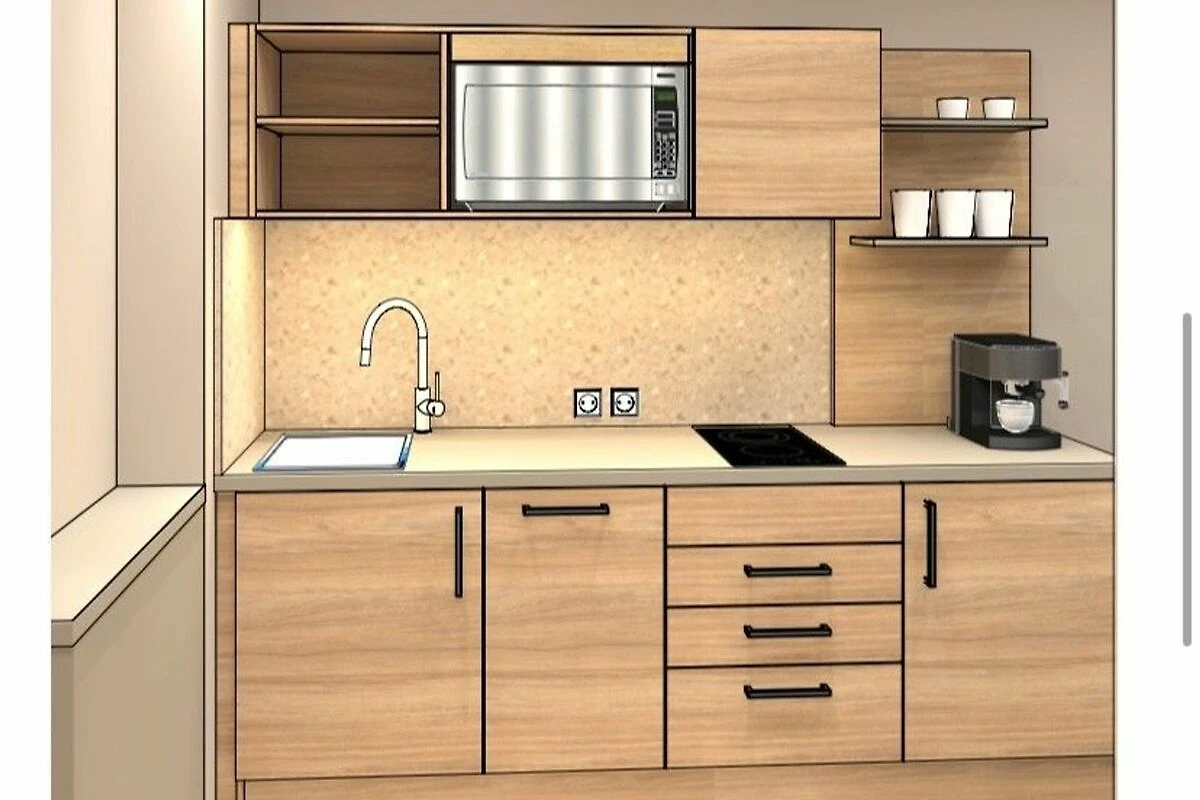 - Küche mit Geschirrspülmaschine, Mikrowelle mit Backfunktion, 2er Induktionskochplatte, Kühlschrank, Nespresso Kaffeemaschine, Wasserkocher ausgestattet