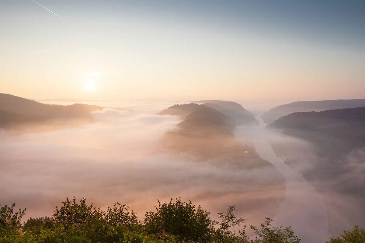 unweit vom Aussichtspunkt Cloef zur Saarschleife, Baumwipfelpfad, Abenteuerwald, Wandernetz Saar-Hunsrücksteig gelegen