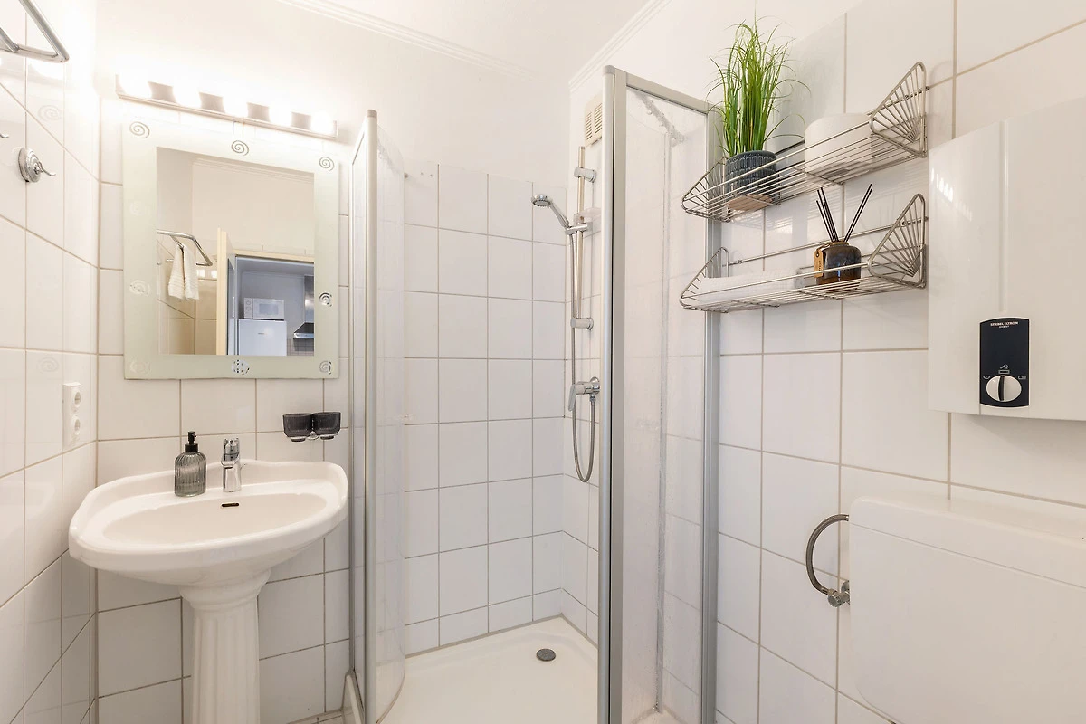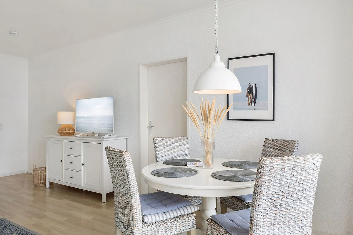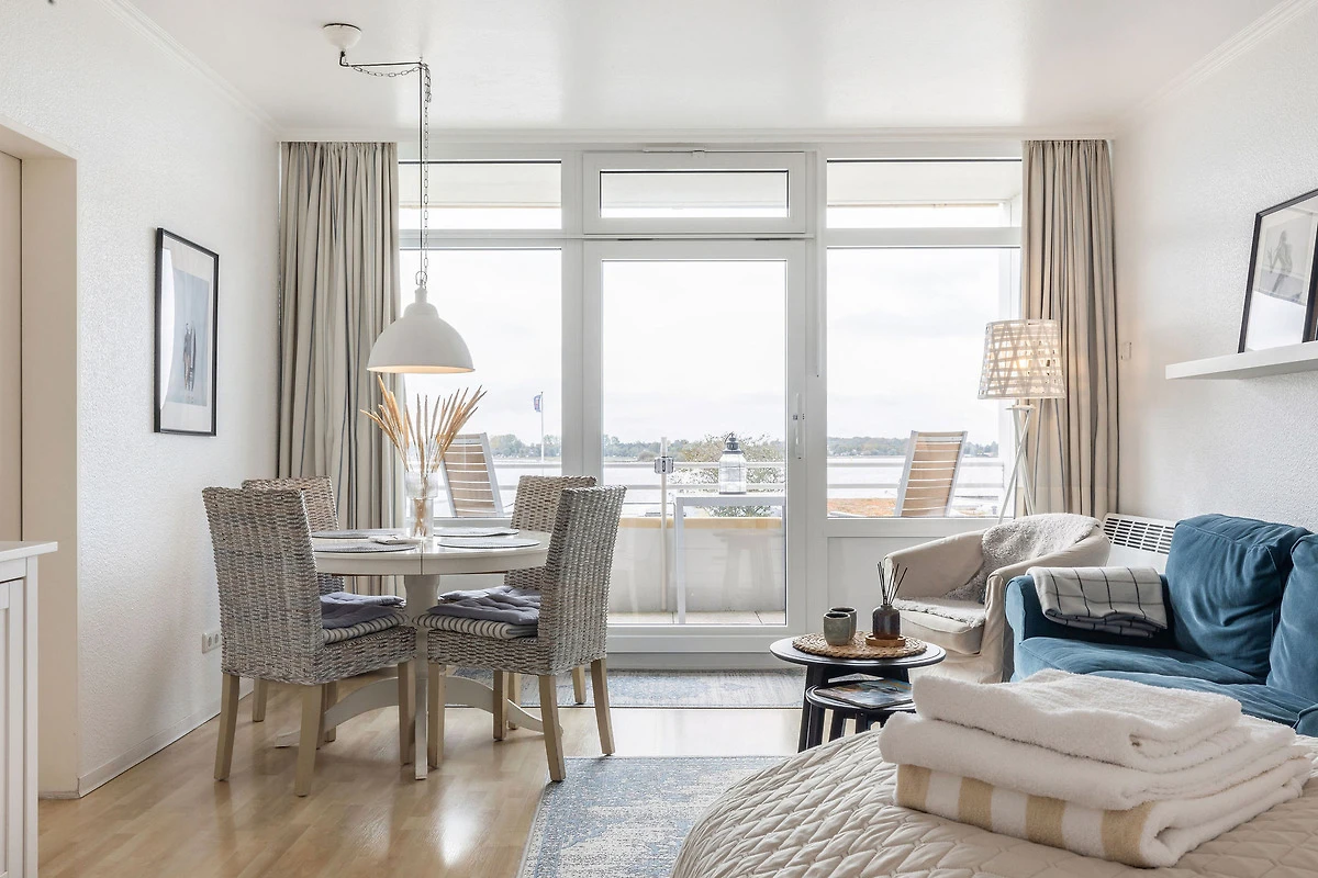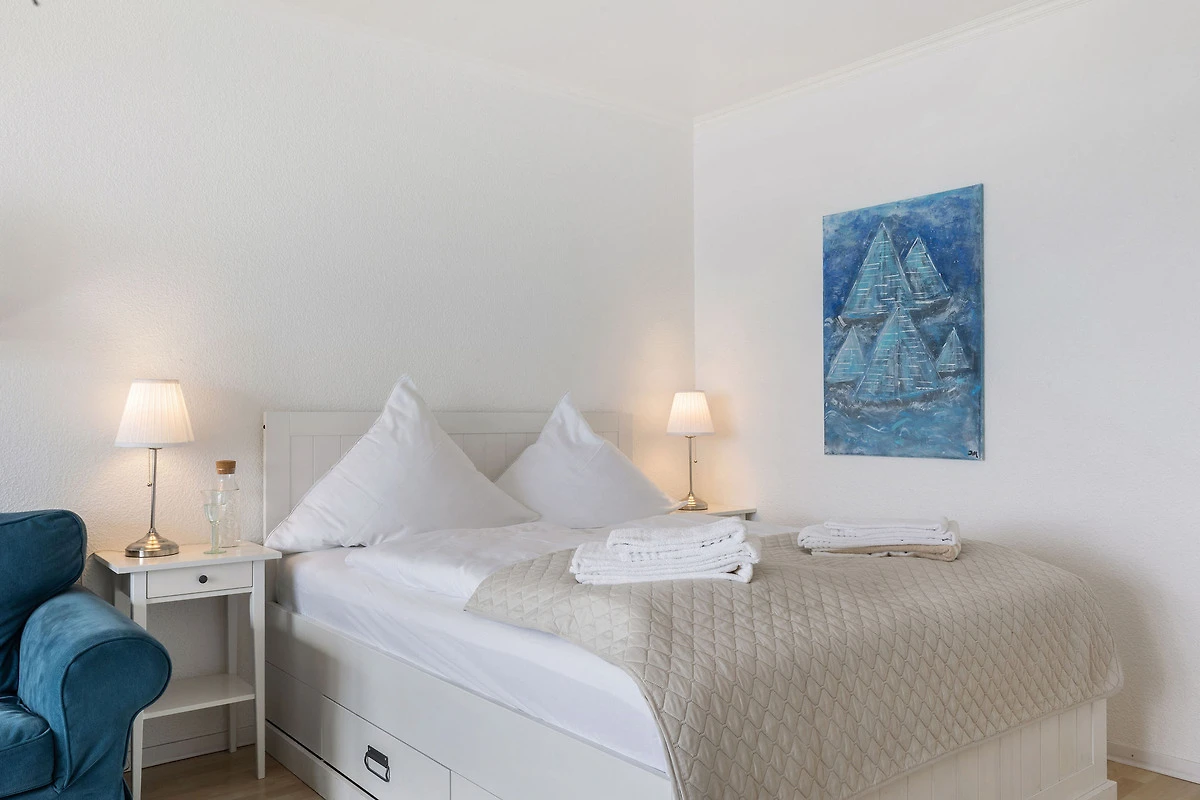 Traumhafter Blick auf Ostsee und Hafeneinfahrt - Verbringen Sie Ihren Urlaub in Cozy Beach, der besonderen Ferienwohnung zwischen Strand und Yachthafen! Das 49 qm grosse Apartment besticht durch den sensationellen Ausblick, direkt vor dem überdachten Balkon liegt die Hafeneinfahrt in den Yachthafen Burgtiefe und es lässt sich herrlich auf die Ostsee und die einfahrenden Schiffe schauen. Aufgeteilt ist Cozy Beach in eine Küche im Eingangsbereich der Wohnung, die über alle Annehmlichkeiten verfügt. Angrenzend befindet sich das Duschbad. Der grosse kombinierte Wohn-Schlafraum verfügt über ein Doppelbett (160x200 cm), Sofa, Smart-TV und Esstisch für 4 Personen. Im separaten Schlafzimmer befindet sich ein weiteres Doppelbett (180x200 cm) sowie ein Kleiderschrank. Zur Wohnung gehört ein Stellplatz vor dem Haus, es gibt einen Abstellraum für Fahrräder für die Hausgemeinschaft.