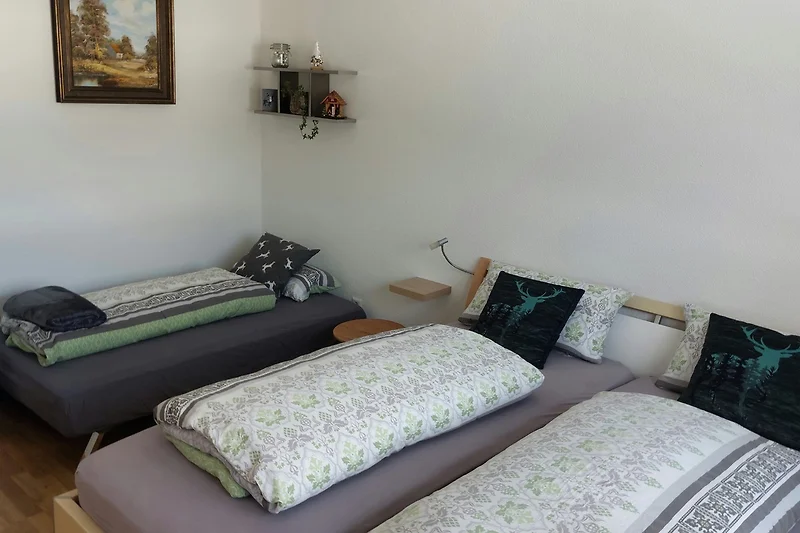 Parkplätze stehen ausreichend um das Haus kostenfrei zur Verfügung. Die Ferienwohnung befindet sich 2 geh Minuten vom Zentrum entfernt. Jeden Freitag gibt es dort einen Frischemarkt auf dem Rathausplatz. Ebenso sind Lebensmittel Geschäfte, Drogerie Markt, Apotheke, Bäckereien, Metzgerei, Volksbank und Sparkasse, ev. und kath. Kirche sowie Bushaltestelle Zentral zu Fuss erreichbar.