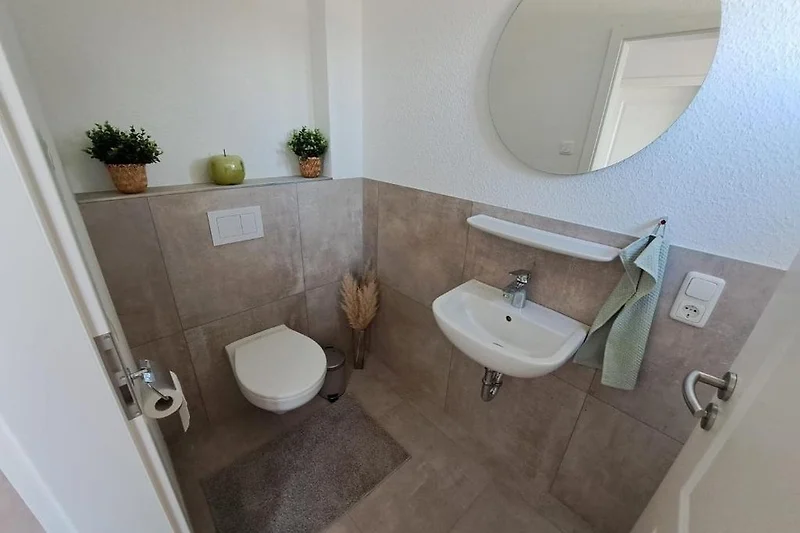 Alle Fenster sind mit elektrischen Rollläden ausgestattet, einschliesslich der Velux-Fenster. Das Ferienhaus verfügt über einen eingezäunten Garten, ideal für Haustiere, eine grosse Süd-Terrasse und einen Stellplatz direkt am Haus. Über einen privaten Weg erreichen Sie nach 150 Metern das Wangermeer, einen beeindruckenden 100 Hektar grossen Freizeitsee. Dort können Sie schwimmen, angeln oder Wassersportarten wie Stand-Up-Paddling (SUP) ausprobieren. Direkt am Wangermeer gibt es zudem die Möglichkeit, Fussballgolf zu spielen.