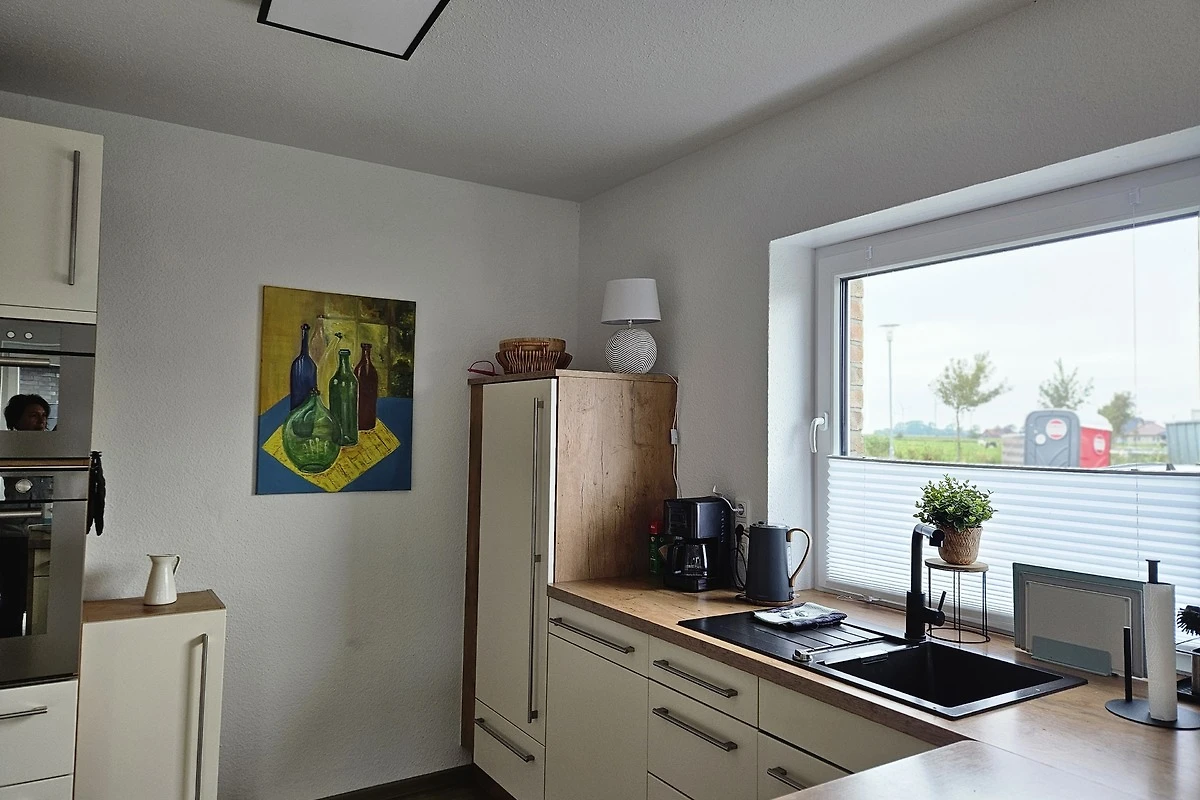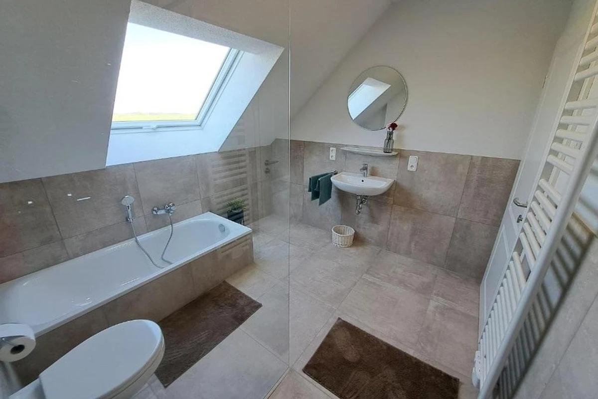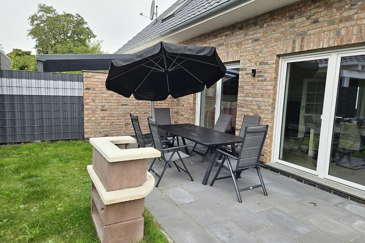 Unser Ferienhaus liegt nur 150 Meter vom Wasser entfernt und bietet Platz für bis zu sechs Personen sowie Ihre Haustiere. Das Erdgeschoss umfasst eine geräumige Wohnküche mit bodentiefen Fenstern, die einen direkten Zugang zur grosszügigen Terrasse ermöglichen. Zusätzlich gibt es ein Gäste-WC, einen breiten Flur mit Garderobe und einen Hauswirtschaftsraum mit Waschmaschine. Im Obergeschoss befinden sich drei gemütliche Schlafzimmer sowie ein Badezimmer mit einer begehbaren Dusche und einer Badewanne.