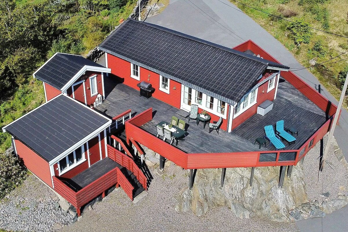 Offene Küche(4 m2)(Kochherd(elektrisch), Dunstabzugshaube, Kaffeemaschine, Waffeleisen, Mikrowelle, Spülmaschine, Kühlschrank, Tiefkühlschrank(200-249L), Waschmaschine), Wohn-/Schlafzimmer(25 m2)(TV(norwegische Fernsehsender)), Schlafzimmer(6 m2)(Doppelbett), Schlafzimmer(6 m2)(Doppelbett), Schlafzimmer(4 m2)(2x Etagenbett), Badezimmer(Fußbodenheizung)(Waschbecken, Dusche, Toilette), Badezimmer(Fußbodenheizung)(Badewanne oder Dusche, Waschbecken, Toilette), Heizung(elektrisch), Terrasse(94 m2), Garten, Gartenmöbel, Grill, Parkplatz, Fischreinigungstisch