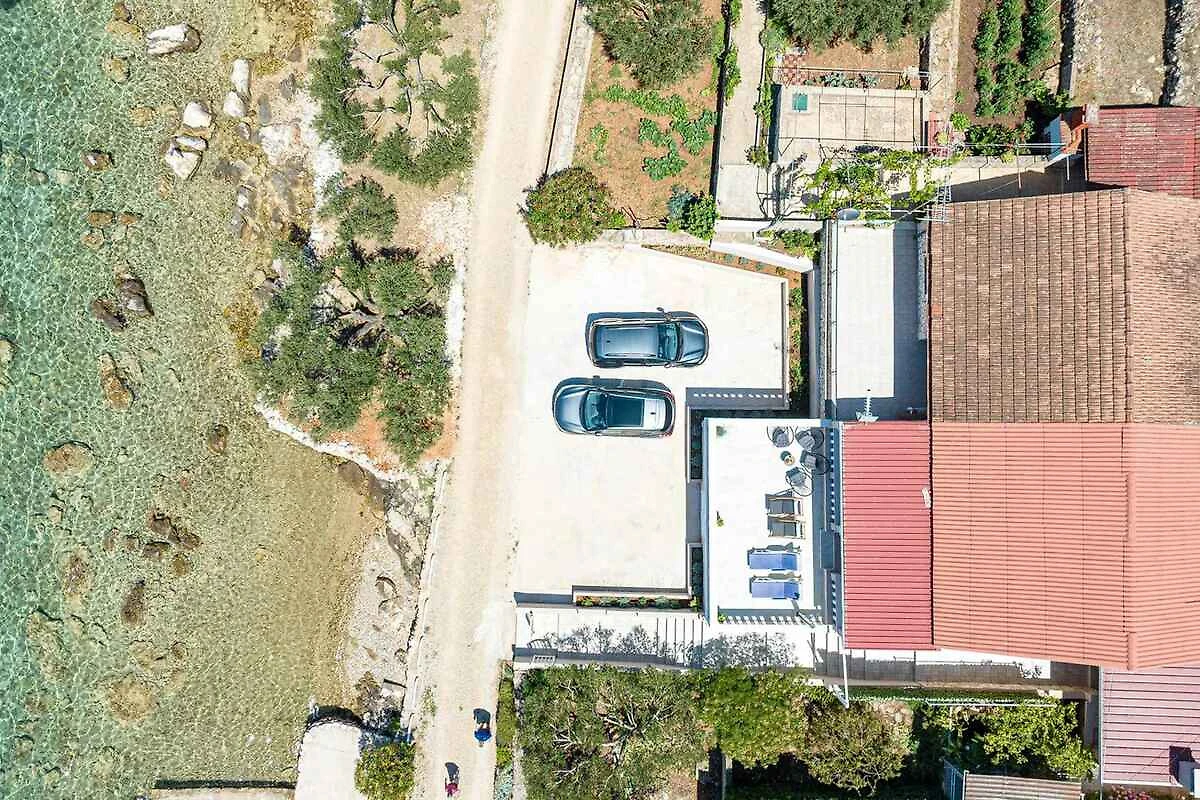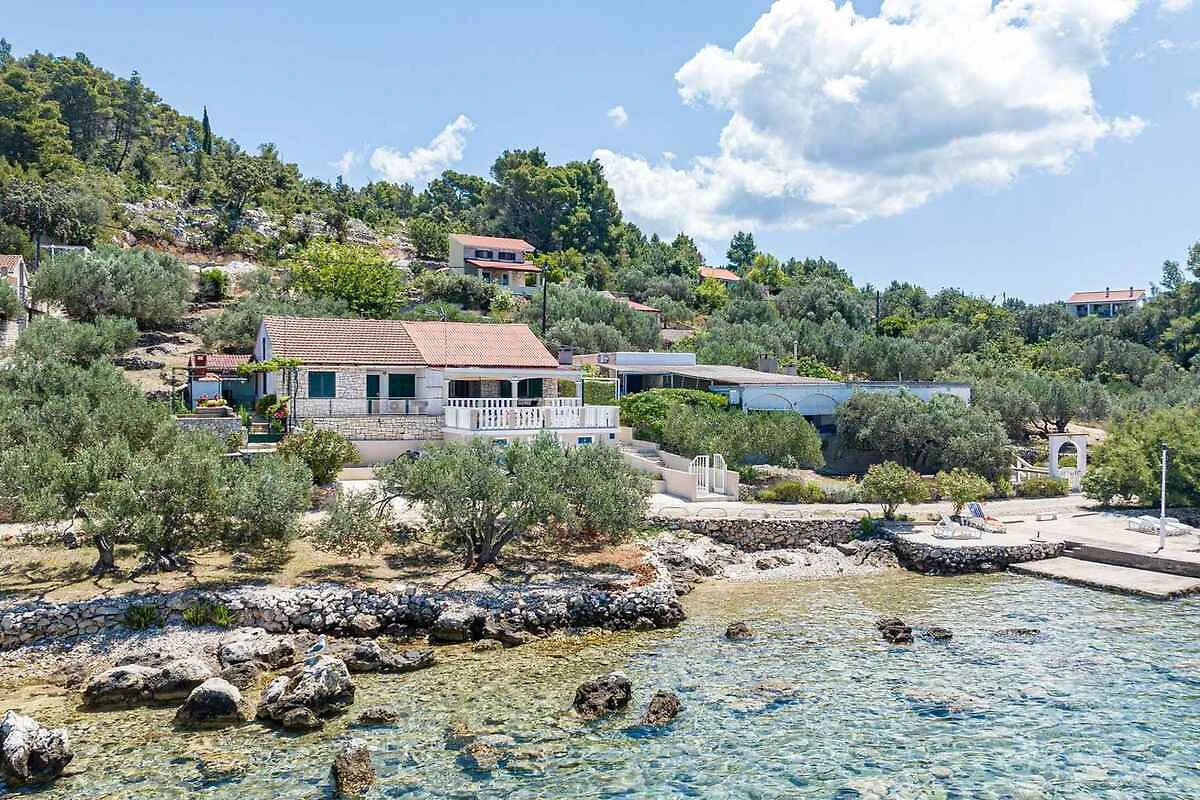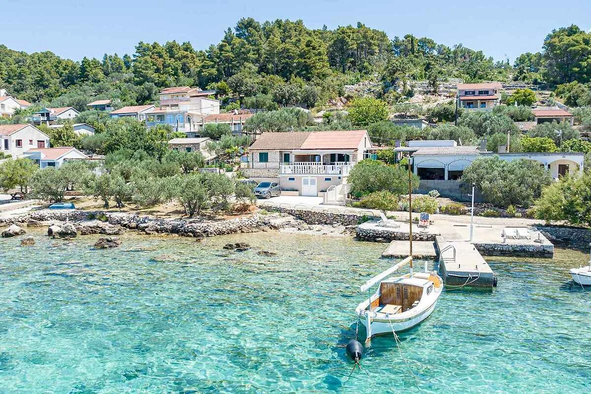 Vela Luka. Das Ferienhaus befindet sich auf einem Gartengrundstück. Die Zufahrt erfolgt über einen Weg (Geröll oder Schotter). Parkplatz auf dem Grundstück.